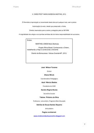 O projeto visa valorizar a cultura e herança afro-brasileira na escola, promovendo o conhecimento sobre a história e cultura da África e sua importância para a formação da sociedade brasileira. Serão abordados temas como a diversidade de países africanos, idiomas, arte, religiões de forma interdisciplinar nas aulas de português, artes, história, geografia e outras disciplinas.
