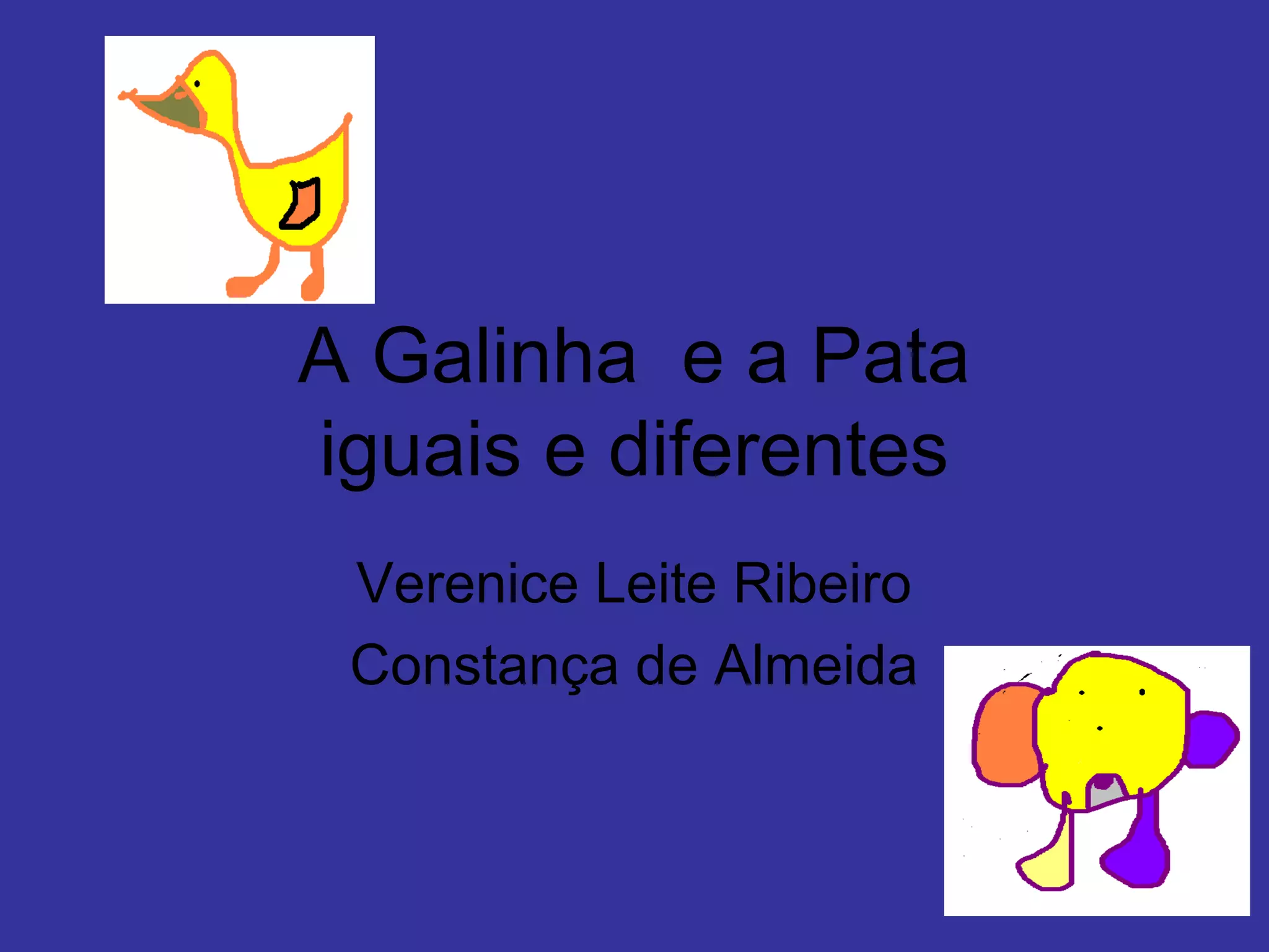 O texto descreve as semelhanças e diferenças entre galinhas/patos e galos/patos. Ambos chocam ovos e os filhotes quebram a casca para nascer, mas os patinhos aprendem a nadar e os pintinhos seguem a mãe. Enquanto galinhas têm pés fortes com quatro dedos, patos têm os dedos ligados por pele. Galos e patos são maiores que galinhas e patas respectivamente.