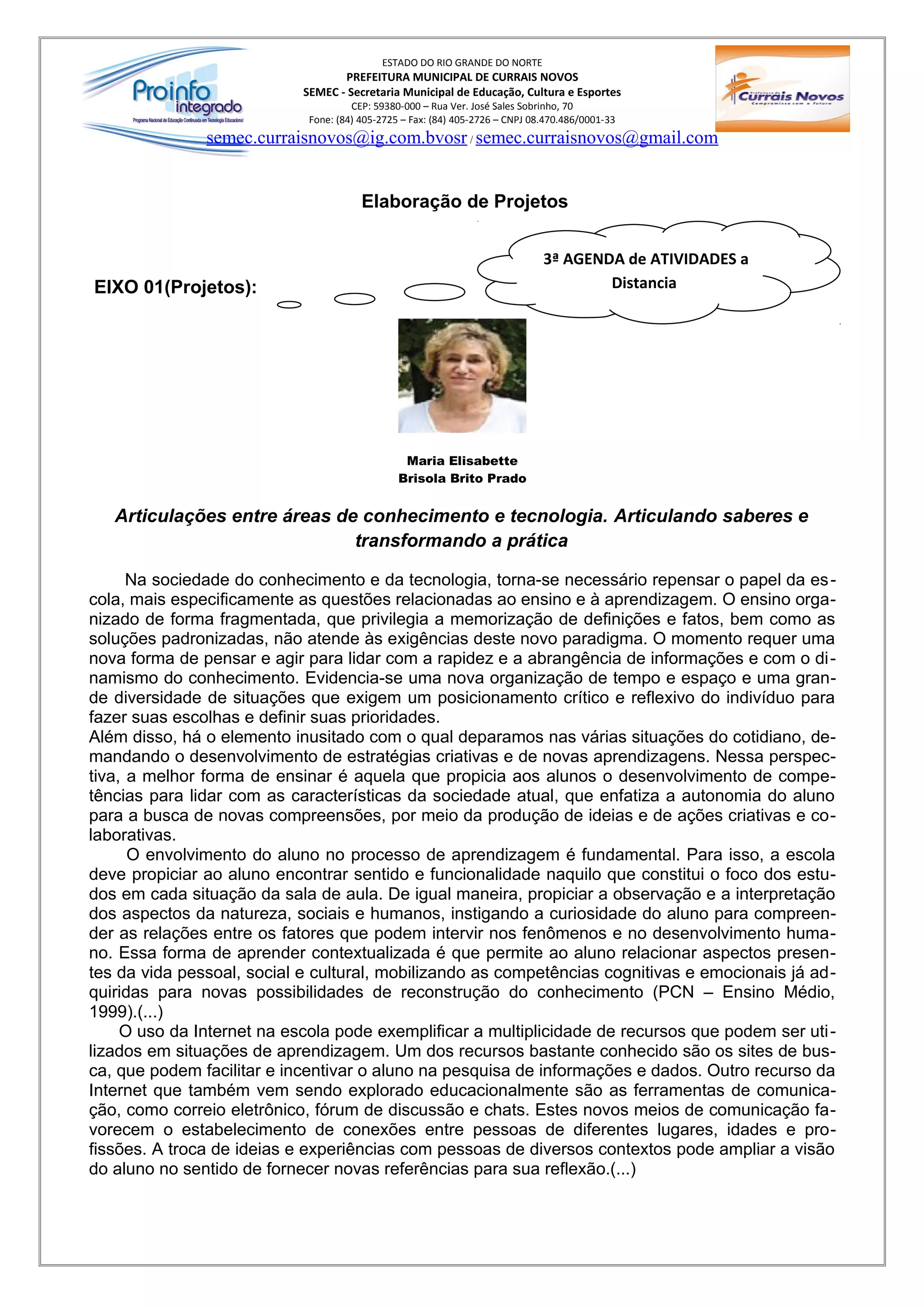 O documento discute a importância da articulação interdisciplinar no processo de ensino e aprendizagem utilizando recursos tecnológicos como o computador. Aprender de forma contextualizada permite aos alunos relacionar novos conhecimentos aos já existentes. O professor deve promover a interação entre diferentes áreas para aprofundar a compreensão dos alunos por meio de softwares adequados a cada atividade.