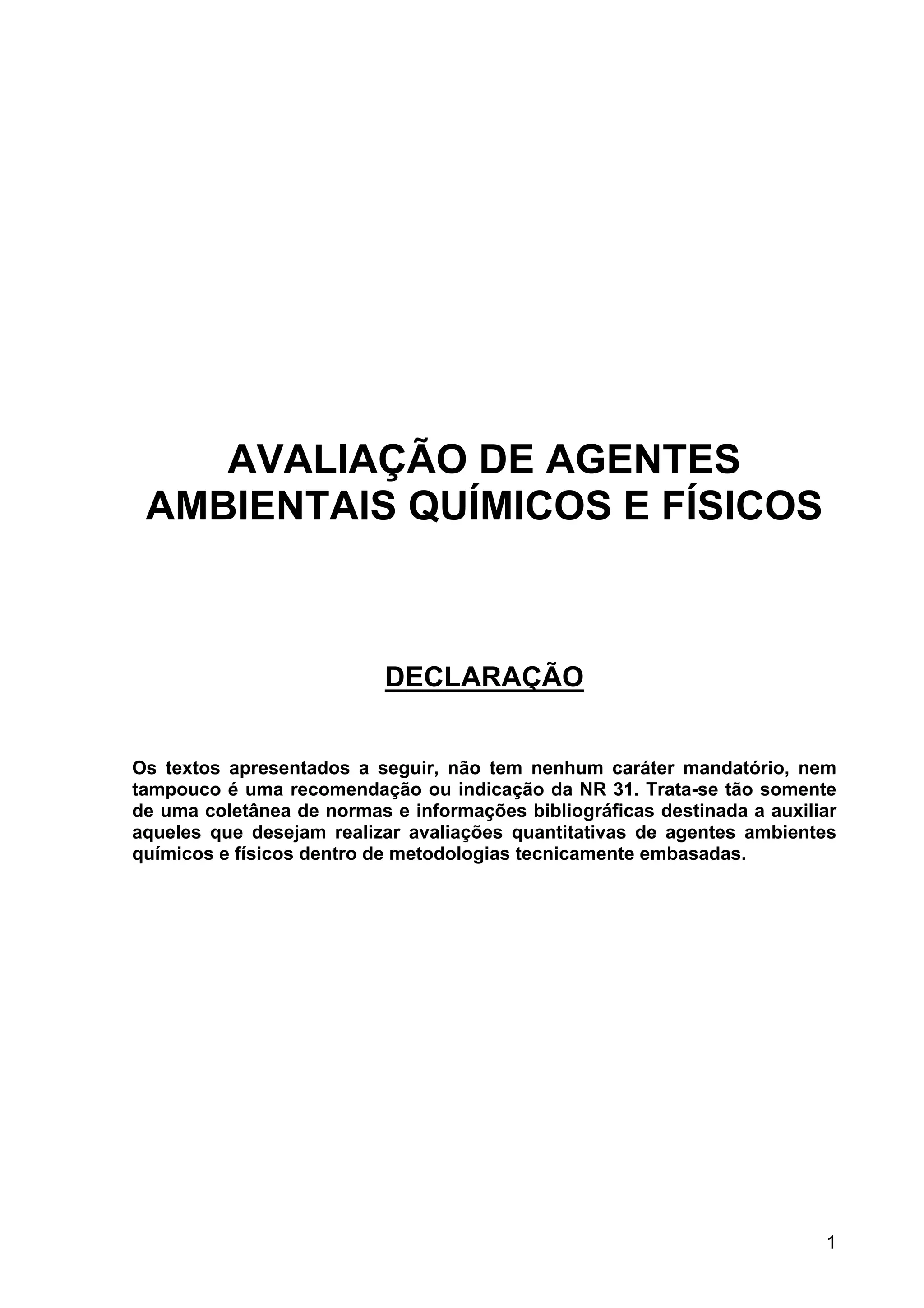 Este documento resume os principais conceitos de avaliação de agentes ambientais químicos e físicos no ambiente de trabalho, incluindo unidades de medida, limites de exposição, coleta e análise de amostras, e interpretação dos resultados. O objetivo é auxiliar empresas a identificar, quantificar e controlar esses agentes dentro de níveis considerados seguros de acordo com a legislação brasileira.