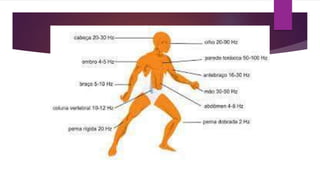 O documento discute os riscos físicos de sobrecarga térmica e vibrações no ambiente de trabalho. A sobrecarga térmica pode causar hipertermia se o corpo não conseguir regular adequadamente sua temperatura. A exposição a vibrações pode causar danos aos vasos sanguíneos das mãos e braços, levando à síndrome da vibração. O documento também discute os riscos do frio excessivo e as normas de segurança aplicáveis.
