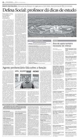 O documento resume um concurso para mil vagas de agente penitenciário da Secretaria de Defesa Social de Minas Gerais. Ele explica que o edital será divulgado até março de 2012 e trará vencimentos iniciais de R$2 mil mensais. Também dá dicas sobre a preparação para o concurso e detalha as atribuições e requisitos do cargo de agente penitenciário.