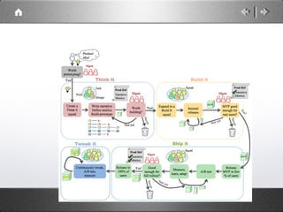 O documento descreve a evolução de metodologias ágeis e tradicionais de gerenciamento de projetos, como Waterfall e Scrum, detalhando tempos de entrega e níveis de dificuldade. As práticas ágeis, como Lean e Kanban, apresentam tempos de entrega reduzidos e baixa dificuldade, destacando a auto-gestão das equipes e a comunicação diária. O texto também menciona a importância de reuniões e testes automatizados na melhoria da qualidade e eficiência dos projetos.
