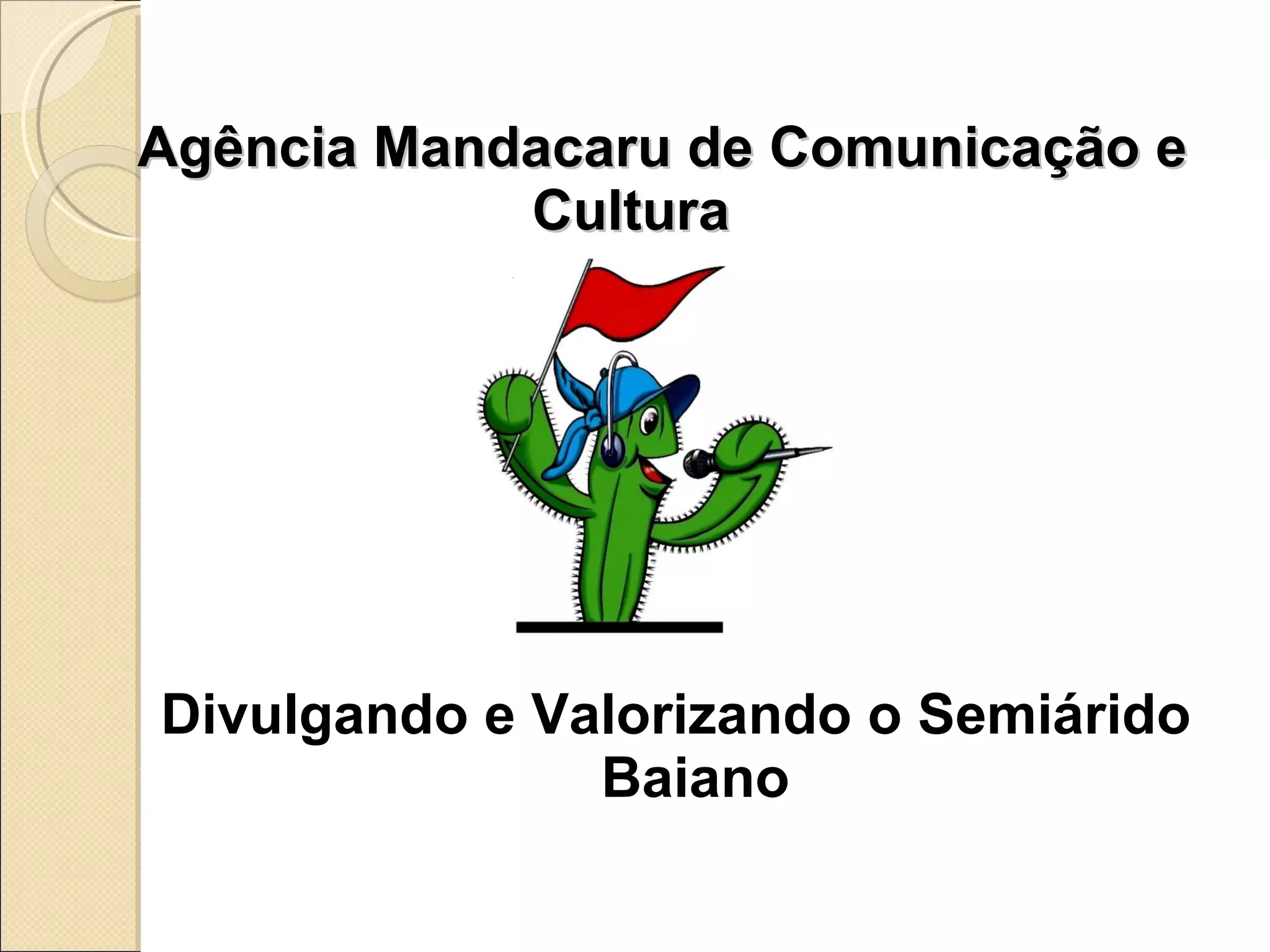 A Agência Mandacaru de Comunicação e Cultura foi fundada em 2005 por 15 jovens comunicadores da região do Sisaleira na Bahia com o objetivo de promover o desenvolvimento sustentável da região por meio do fortalecimento da cultura local nos meios de comunicação. A agência é gerida pelos próprios jovens e realiza qualificação, produção de conteúdo para rádio e impresso, e assessoria de comunicação para movimentos sociais da região.