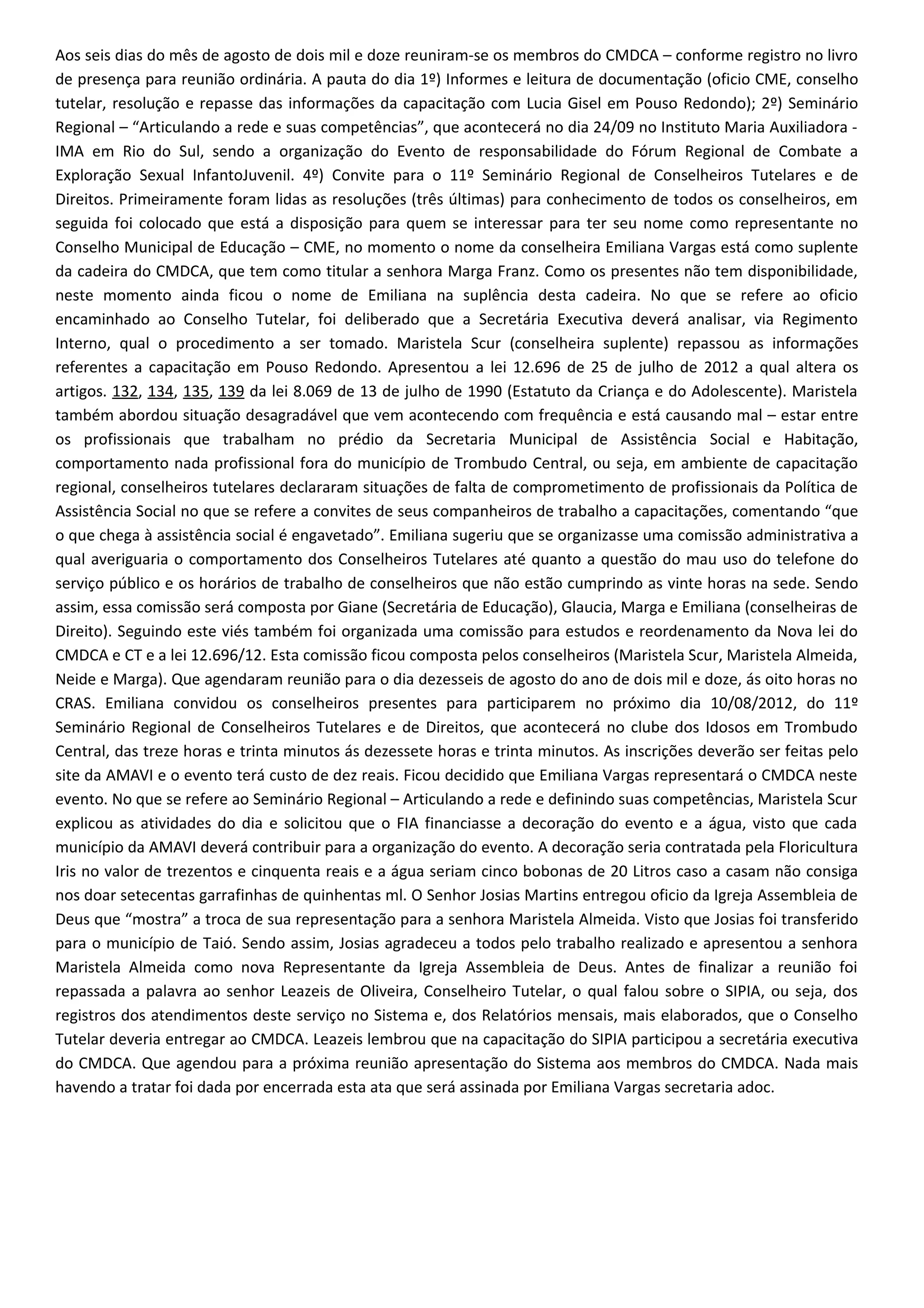3) Outra comissão foi formada para estudar novas leis e reordenar procedimentos do CMDCA e conselho tutelar.