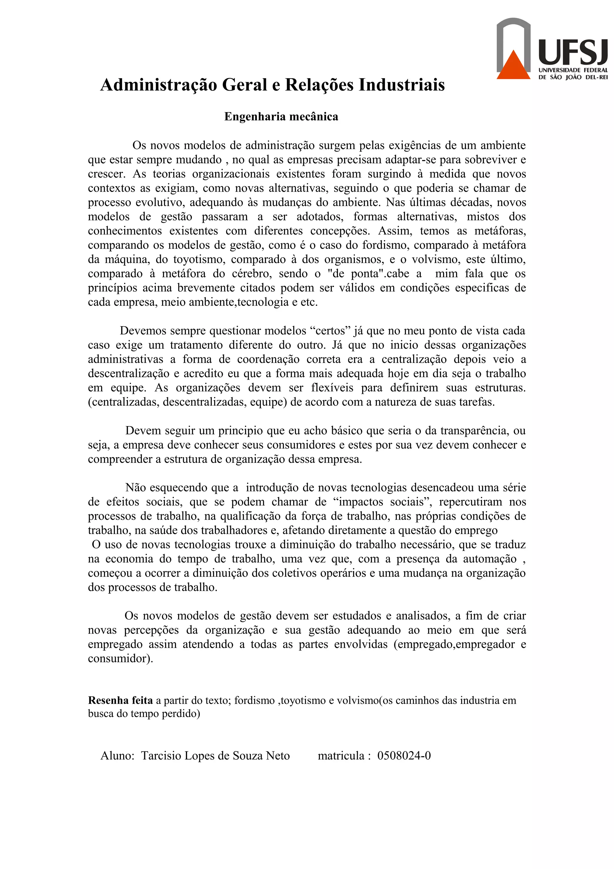 O documento discute a evolução dos modelos de administração e gestão de empresas para se adaptarem às mudanças constantes no ambiente. Apresenta os modelos de Fordismo, Toyotismo e Volvismo e como eles se relacionam com metáforas como máquina, organismos e cérebro. Também discute sobre a importância da flexibilidade organizacional, transparência e do impacto das novas tecnologias no trabalho.