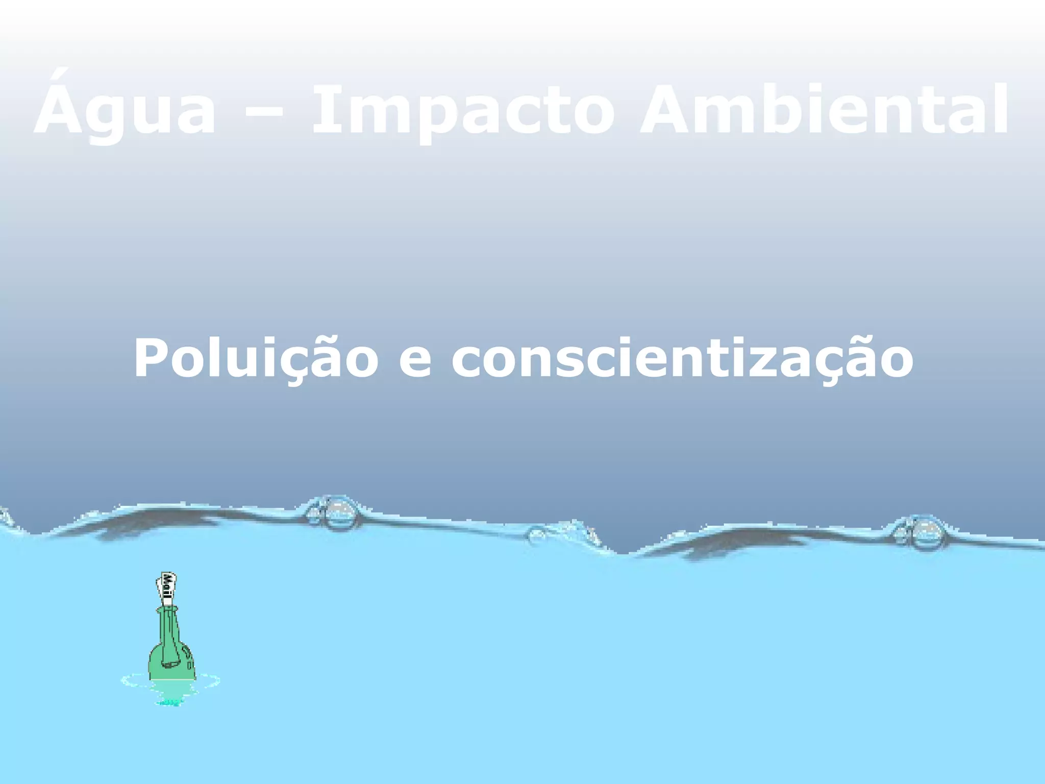 O documento discute vários aspectos relacionados à poluição da água e sua importância para a vida. Aborda conceitos como poluição biológica, sedimentar, térmica e por despejo de substâncias tóxicas. Também discute a quantidade limitada de água doce disponível, métodos de controle da poluição e impactos ambientais causados por fertilizantes, esgotos, petróleo e metais pesados.