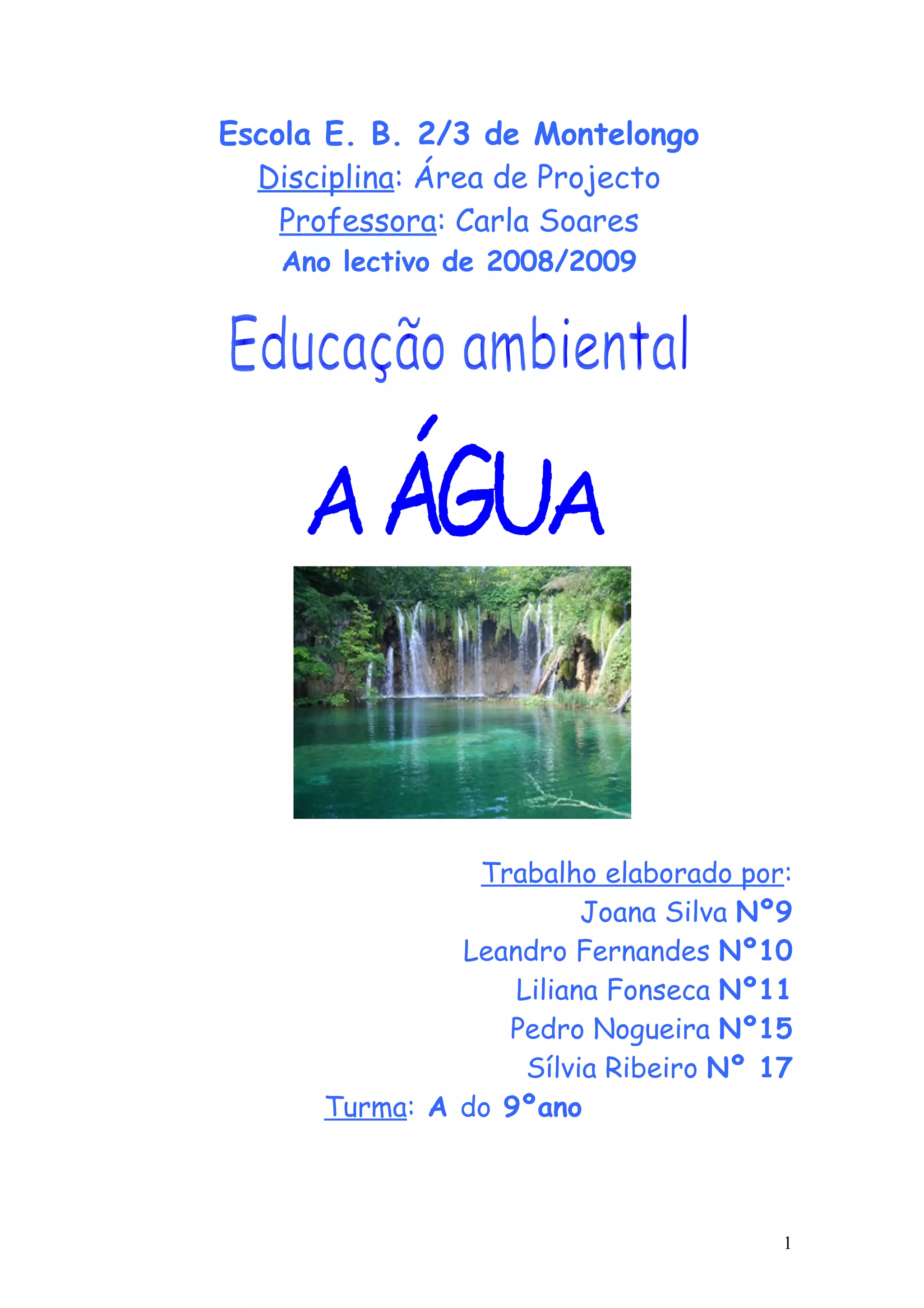 Este documento discute educação ambiental e poluição da água. Ele fornece informações sobre o que é o ambiente, poluição ambiental, impacto ambiental, a política dos 5Rs e conselhos ecológicos. Também discute a importância da água, poluição dos recursos hídricos e o tratamento de águas residuais.