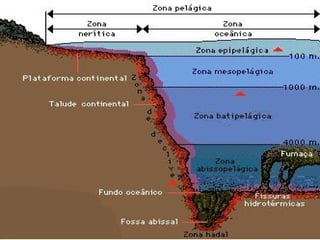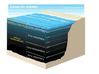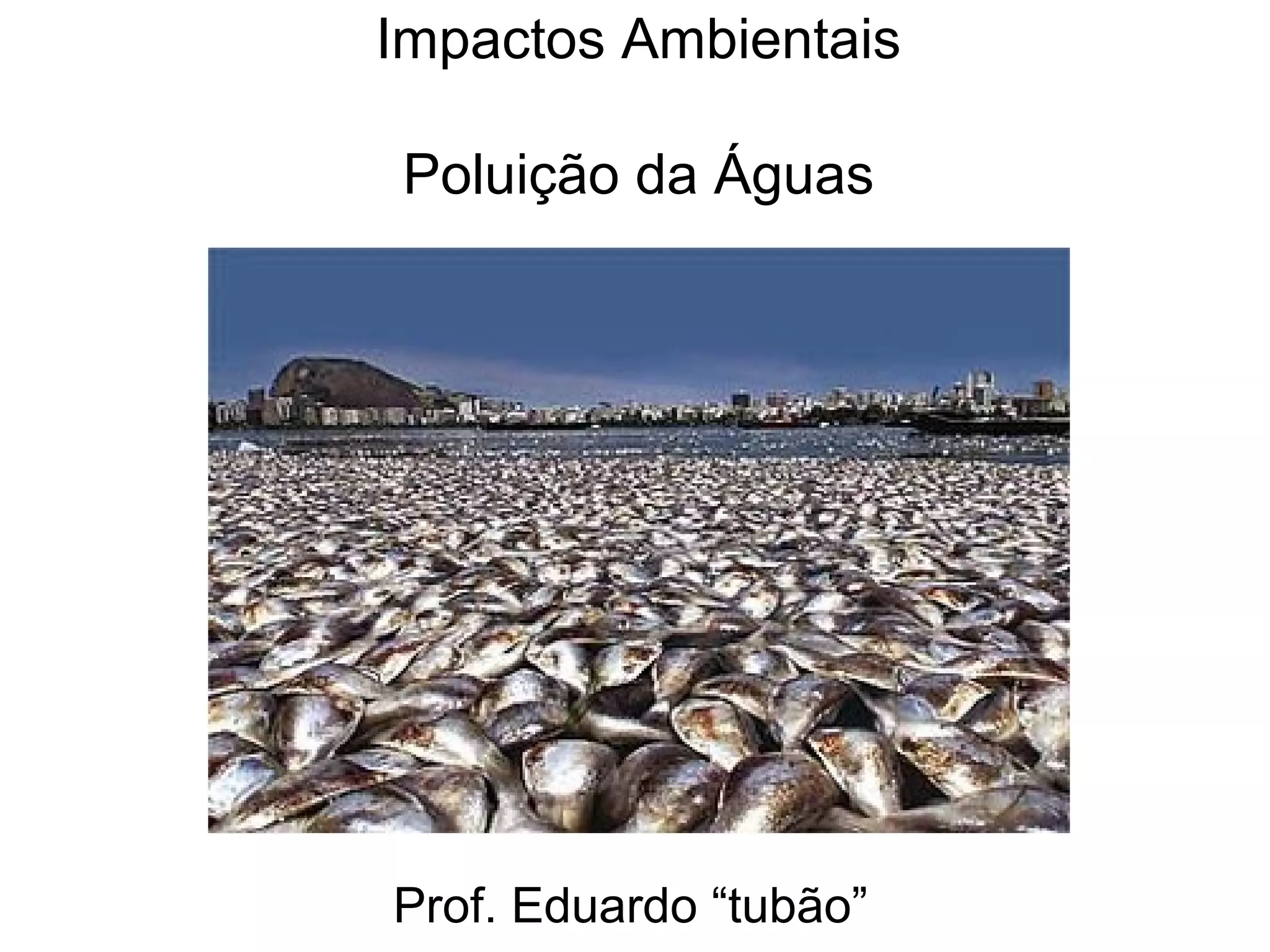 O documento discute os principais tipos de poluição das águas, incluindo esgotos, agrotóxicos, metais pesados, petróleo, substâncias químicas tóxicas e lixo. A poluição orgânica pode levar à eutrofização, criando "zonas mortas" sem oxigênio. Vazamentos de petróleo e água radioativa de usinas nucleares também são abordados como graves problemas ambientais.