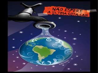 A água é um recurso natural em risco devido ao desperdício, contaminação e descaso humanos, o que pode levar à escassez e comprometer o futuro da humanidade e de outras espécies. Reavaliando nossas ações em relação à água podemos ajudar a evitar problemas futuros.