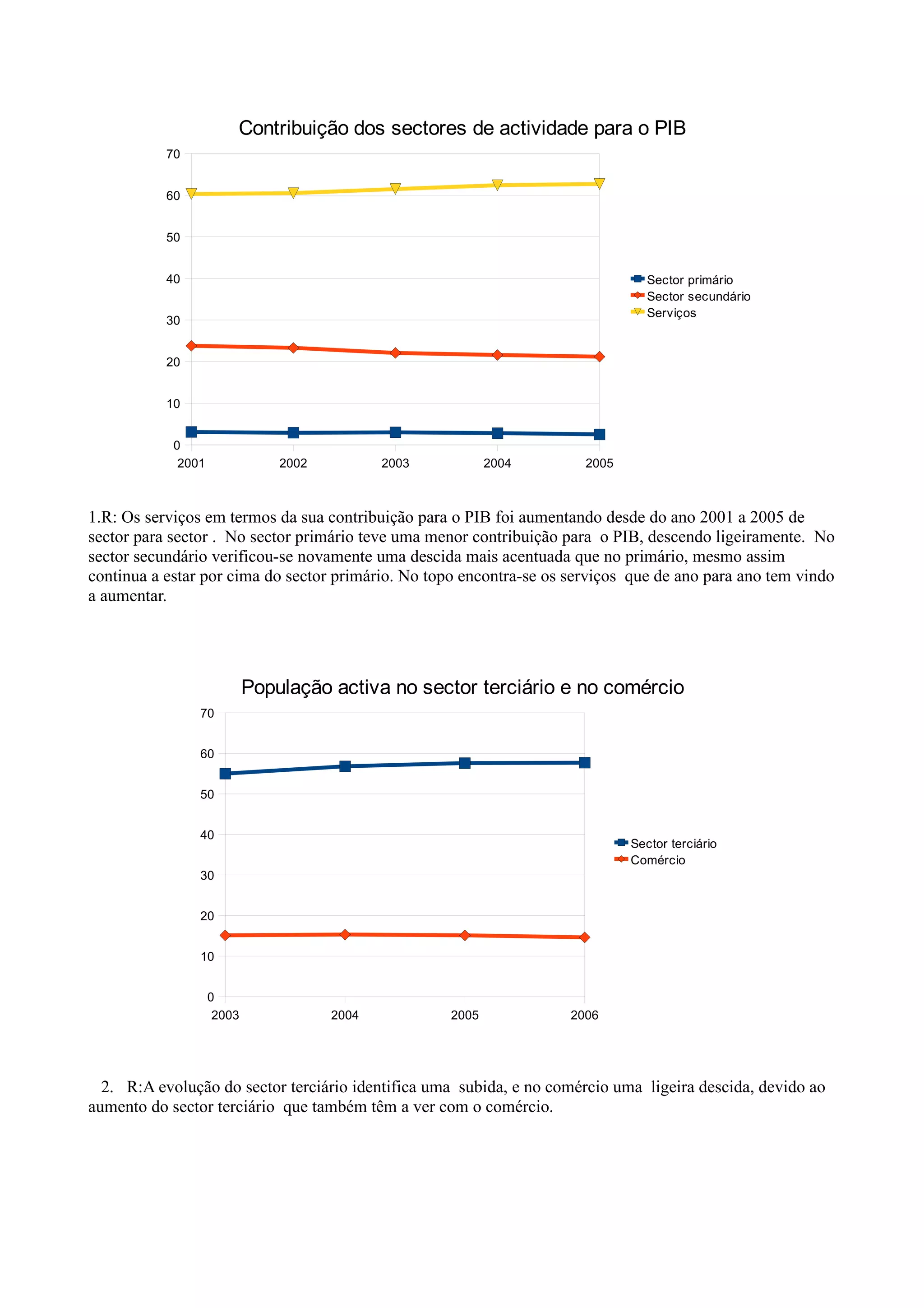 2) De 2003 a 2005, o setor terciário continuou a aumentar, enquanto o comércio diminuiu ligeiramente.