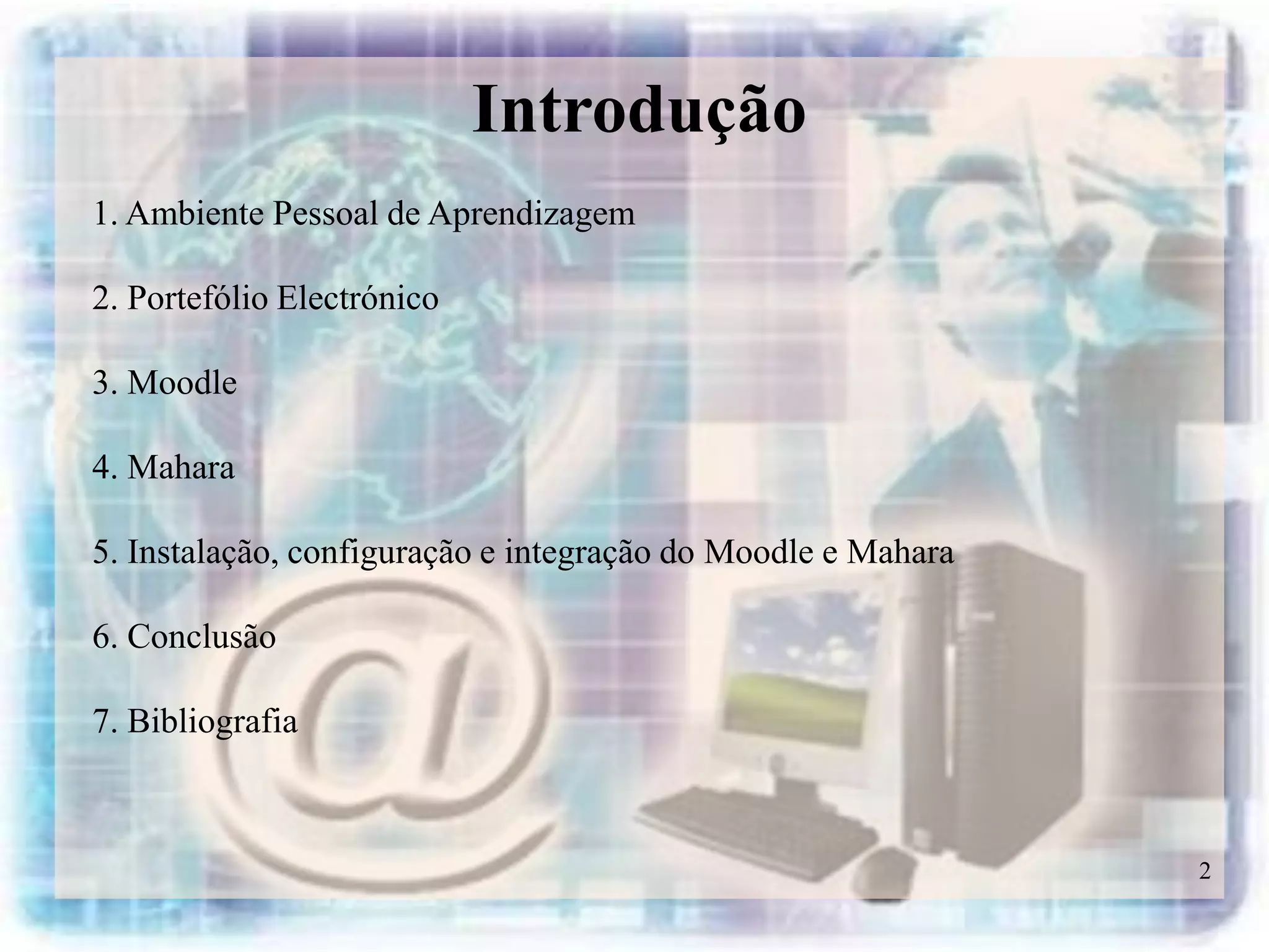 Este documento fornece instruções sobre a instalação e configuração do Moodle e Mahara para criar ambientes de aprendizagem pessoal. Descreve os benefícios dos ambientes pessoais de aprendizagem e do portfólio eletrônico para os estudantes e explica como o Moodle e o Mahara podem ser usados para esses fins. Também detalha os passos tomados para instalar com sucesso as ferramentas e integrá-las para uso do grupo.