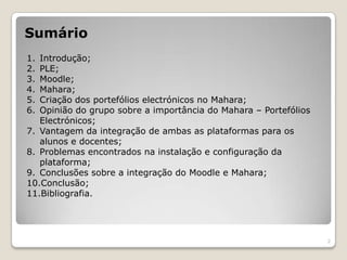- A integração entre Moodle e Mahara permitiria compartilhar informações entre as plataformas de forma automatizada, porém