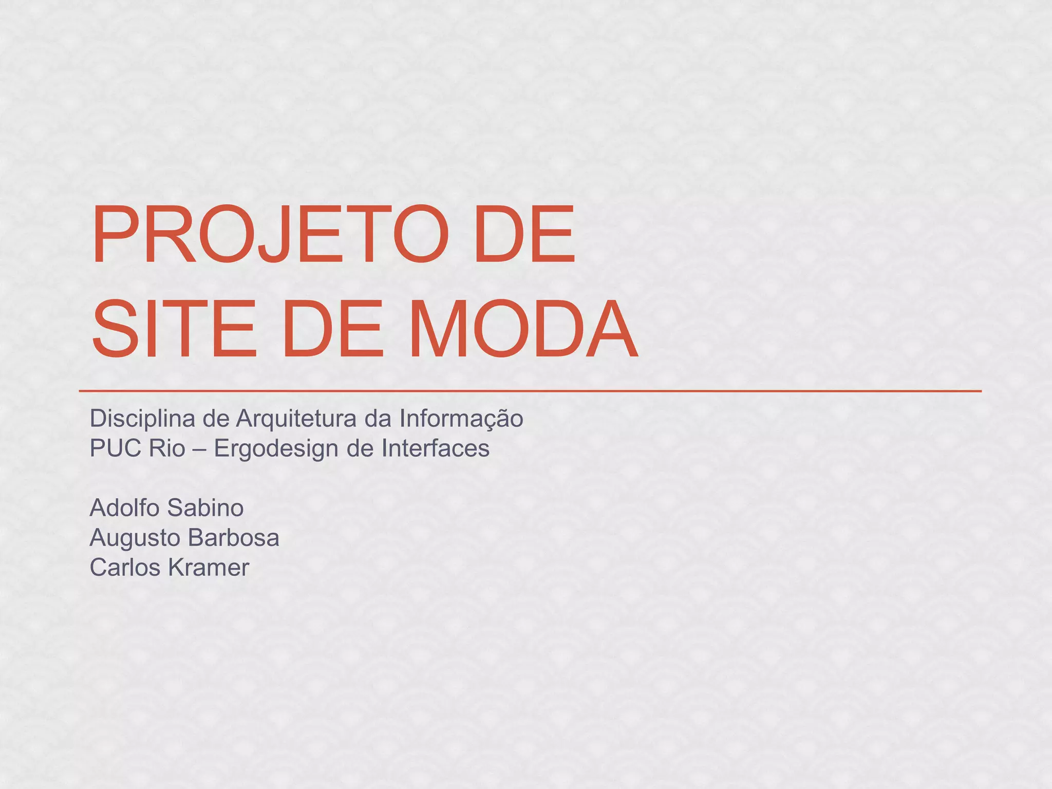 Este documento apresenta um projeto para um site de moda, descrevendo: