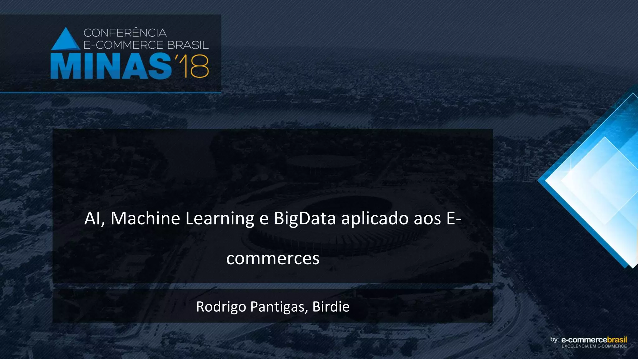 O documento discute como a Inteligência Artificial, Machine Learning e Big Data podem ser aplicados aos e-commerces. Ele explica como o Birdie usa essas técnicas para melhorar o conteúdo de produtos, como treinou modelos de deep learning para classificar imagens e textos, e dá exemplos de outras aplicações como precificação dinâmica e chatbots que podem aumentar o engajamento dos consumidores.