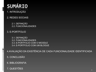 O documento descreve e compara as funcionalidades das plataformas Mahara e Elgg para a criação de portfólios eletrônicos e redes sociais. Essas plataformas permitem a construção do currículo do aluno, a gestão do conhecimento, a criação de blogs e comunidades online. Ambas podem ser integradas à plataforma Moodle e são essenciais para o desenvolvimento acadêmico por meio da partilha de informações.