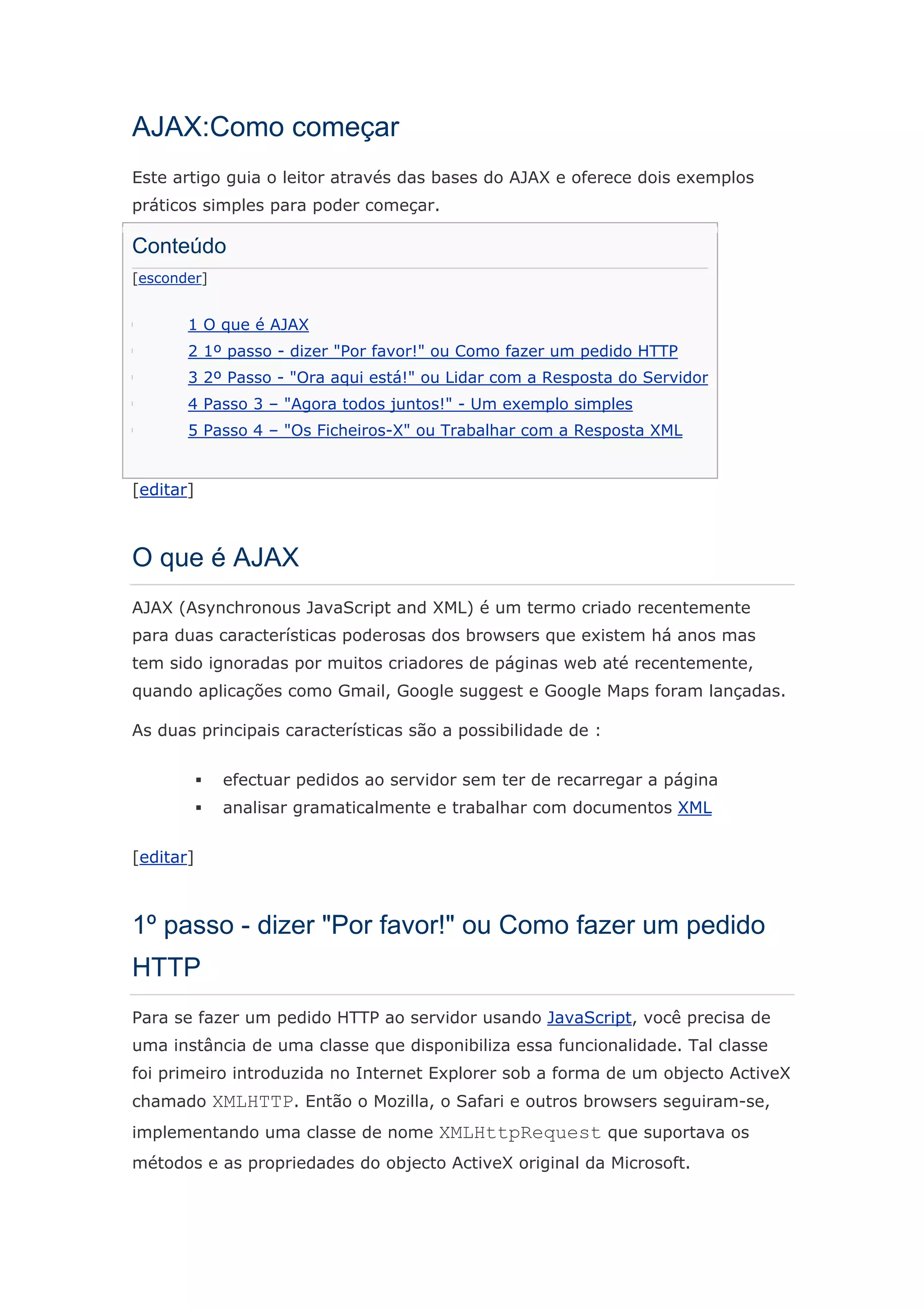 Este documento fornece uma introdução ao AJAX, explicando: