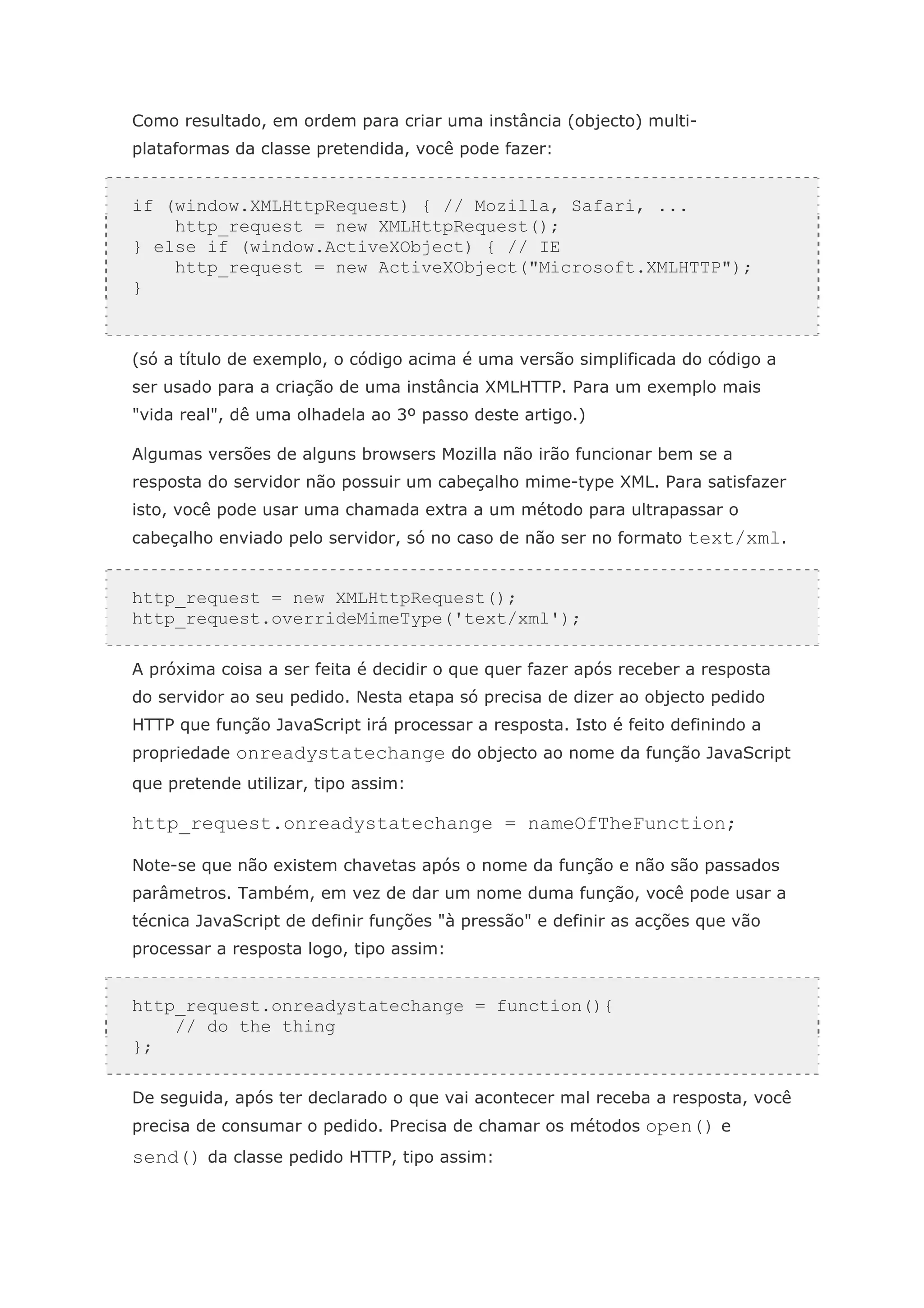 2) Como fazer pedidos HTTP usando a classe XMLHttpRequest;