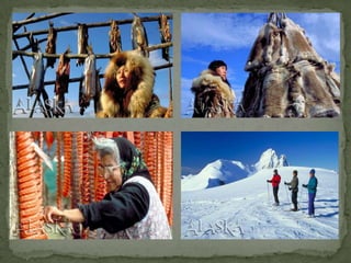 Alasca é o maior e mais setentrional estado dos EUA, com capital em Juneau e população de 731 mil habitantes. Embora o clima seja frio, possui diversos ecossistemas e é conhecido por sua pesca, mineração e turismo nas regiões sul e sudeste. Sua cultura é marcada por danças e artesanatos tradicionais dos povos nativos esquimós.