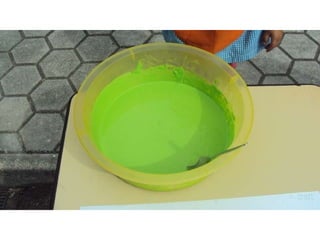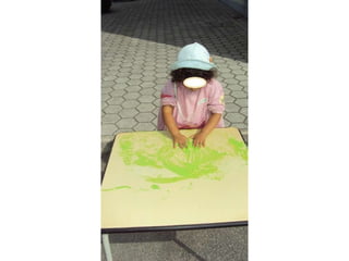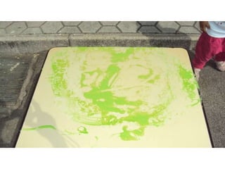 Julia fez uma mistura misteriosa em uma bacia. Quando todos experimentaram com as mãos, era macia ao toque. A mistura podia ser usada para fazer desenhos.