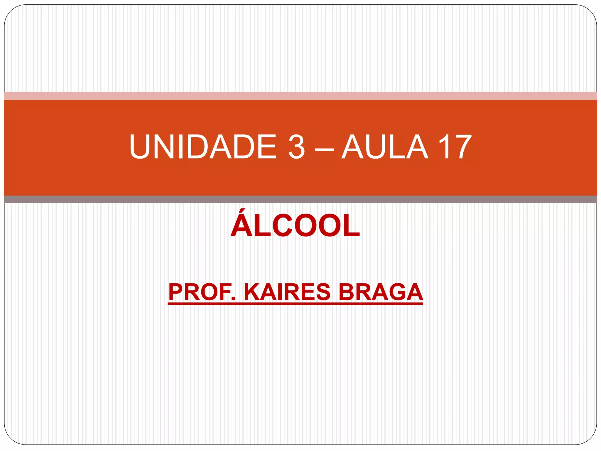 O documento discute álcoois, incluindo sua nomenclatura, classificação e propriedades. Álcool refere-se a compostos orgânicos que contêm o grupo funcional hidroxila ligado a um carbono saturado. Eles são classificados como monoálcoois ou poliálcoois dependendo do número de grupos OH, e como primários, secundários ou terciários dependendo da localização do carbono ligado ao OH. Álcoois interagem por ligações de hidrogênio e têm pontos de fusão e ebulição elevados, com o et