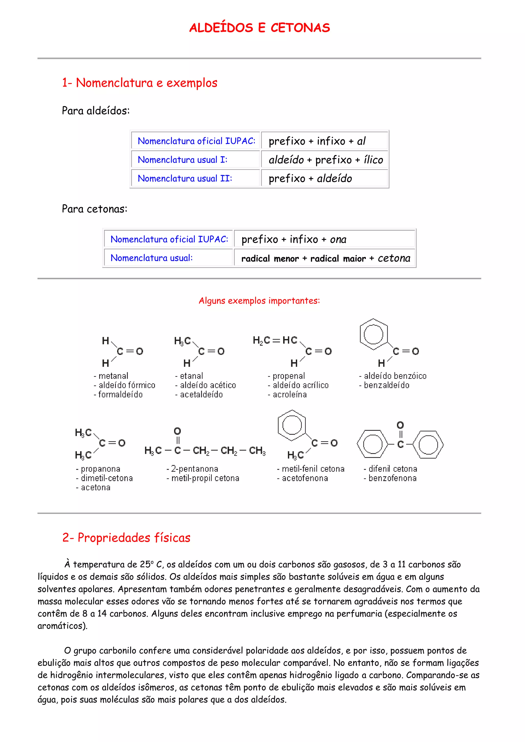 líquidos e os demais são sólidos. Os aldeídos mais simples são bastante solúveis em água e em alguns
