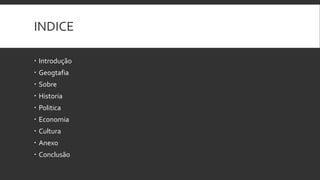 O documento fornece um resumo sobre a Alemanha, cobrindo sua geografia, história, política, economia e cultura. A Alemanha está localizada na Europa central e faz fronteira com vários países. Sua história inclui o Sacro Império Romano Germânico e as duas guerras mundiais, e atualmente é uma democracia com uma economia forte baseada em indústrias como metalurgia e química.