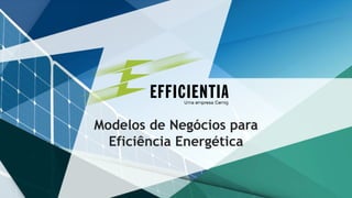 O documento discute modelos de negócios para eficiência energética no Brasil. Apresenta o ranking de países em eficiência energética segundo um estudo, com o Brasil em 15o lugar. Detalha os negócios e projetos de uma empresa especializada em soluções de eficiência energética, incluindo cogeração, geração distribuída e iluminação.