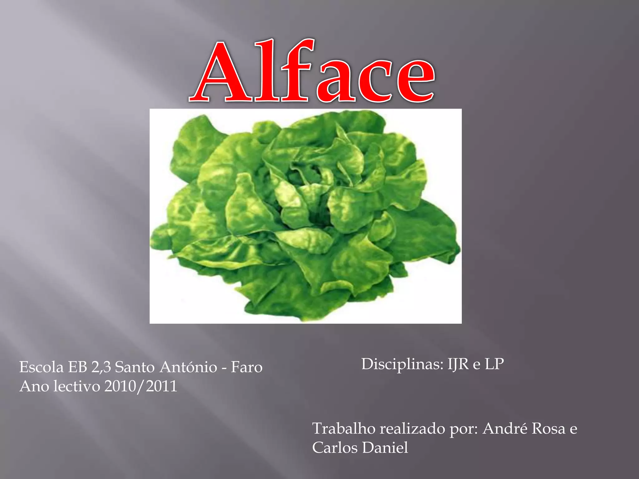 A alface (Lactuca sativa) é uma planta hortense utilizada na alimentação humana desde 500 a.C., originária do leste do Mediterrâneo e cultivada em várias regiões. Existem diferentes variedades, como alface-repolhuda e alface-romana, que requerem temperaturas amenas e cuidados na preparação do solo para cultivo. As pragas comuns incluem piolho da alface e mosca-branca, e a alface é utilizada em diversos pratos, como saladas e sopas.