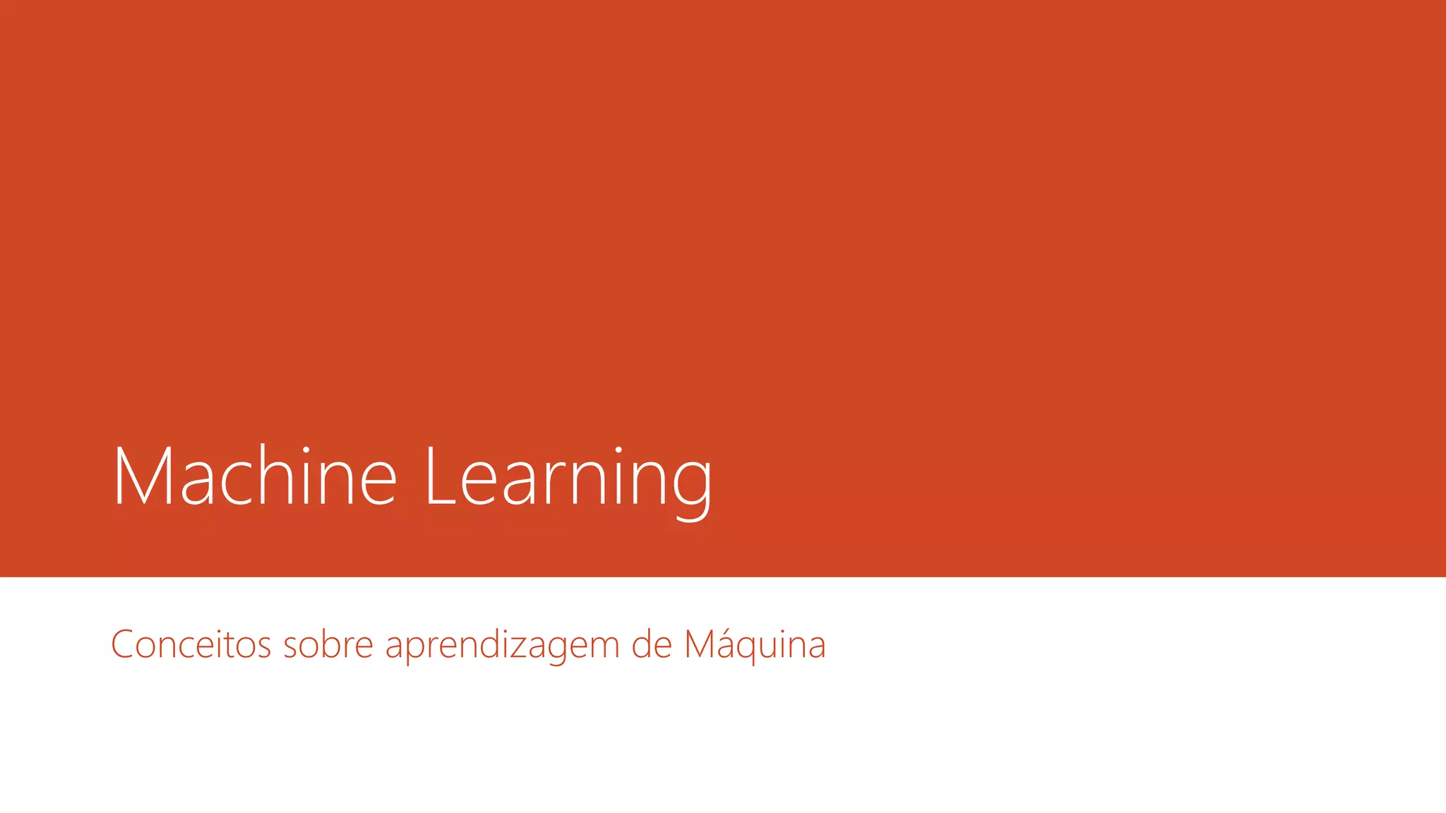 O documento discute conceitos básicos de aprendizagem de máquina, incluindo tipos de aprendizado supervisionado e não supervisionado e exemplos de algoritmos e aplicações.