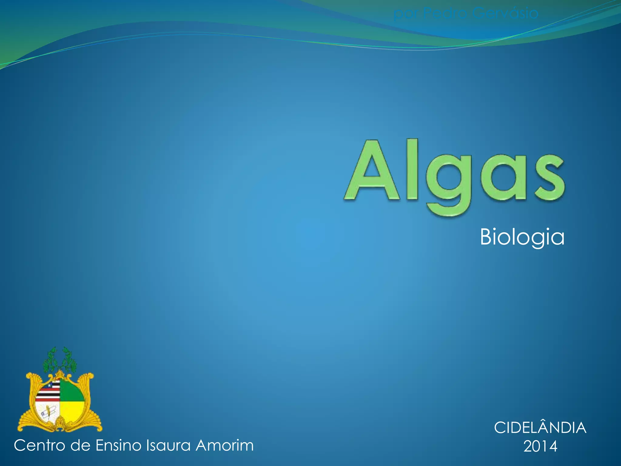 As algas são seres eucarióticos e autotróficos que vivem em água doce ou salgada. Elas são classificadas em quatro grupos principais: clorofíceas, feofíceas, rodofíceas e crisofíceas. As algas se reproduzem de forma assexuada ou sexuada e desempenham um papel importante na ecologia e economia, produzindo oxigênio e sendo usadas como alimento e em indústrias.