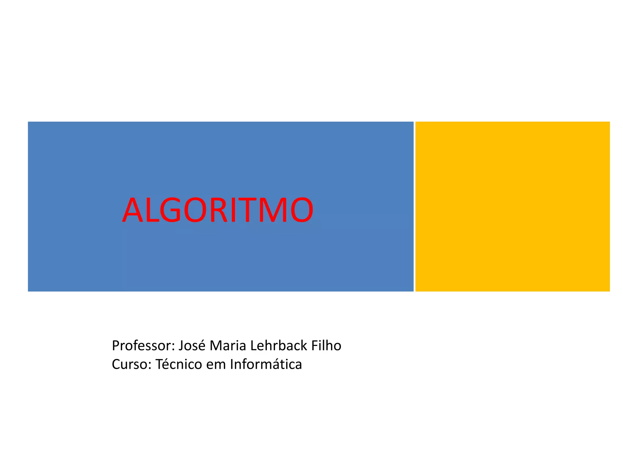 O documento introduz o conceito de algoritmo, definindo-o como um conjunto de passos organizados para resolver um problema. Algoritmos podem ser computacionais ou não, dependendo se a sequência de passos pode ou não ser executada por um computador. Exemplos de algoritmos não computacionais incluem atravessar a rua, trocar uma lâmpada e fazer miojo.