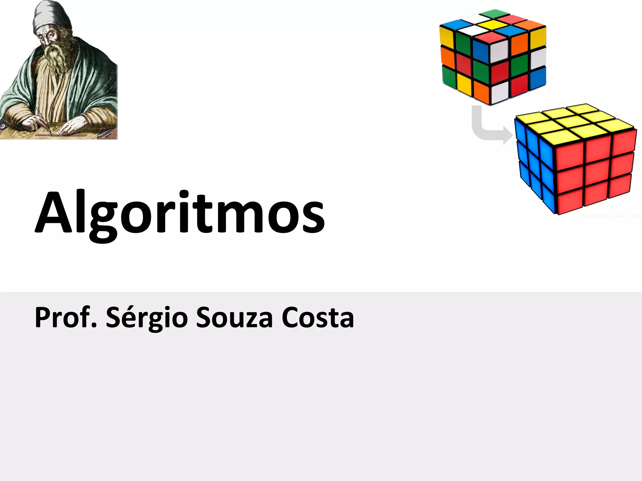 Discutem-se definições e características de algoritmos, como sequências finitas de passos para resolver problemas. Fornecem-se exemplos de algoritmos, como receitas culinárias e troca de lâmpadas. Abordam-se também representações gráficas como fluxogramas para descrever algoritmos.