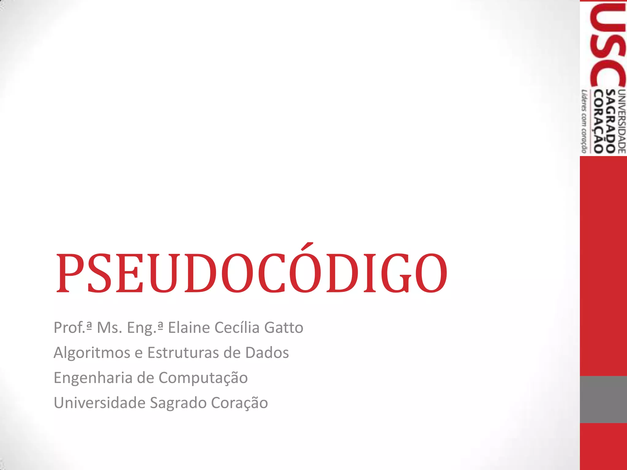 O documento apresenta os principais comandos e estruturas de pseudocódigo para construção de algoritmos, incluindo declaração de variáveis, atribuição de valores, entrada e saída de dados, blocos e estrutura sequencial. Exemplos ilustram o uso dessas estruturas para resolver problemas simples.