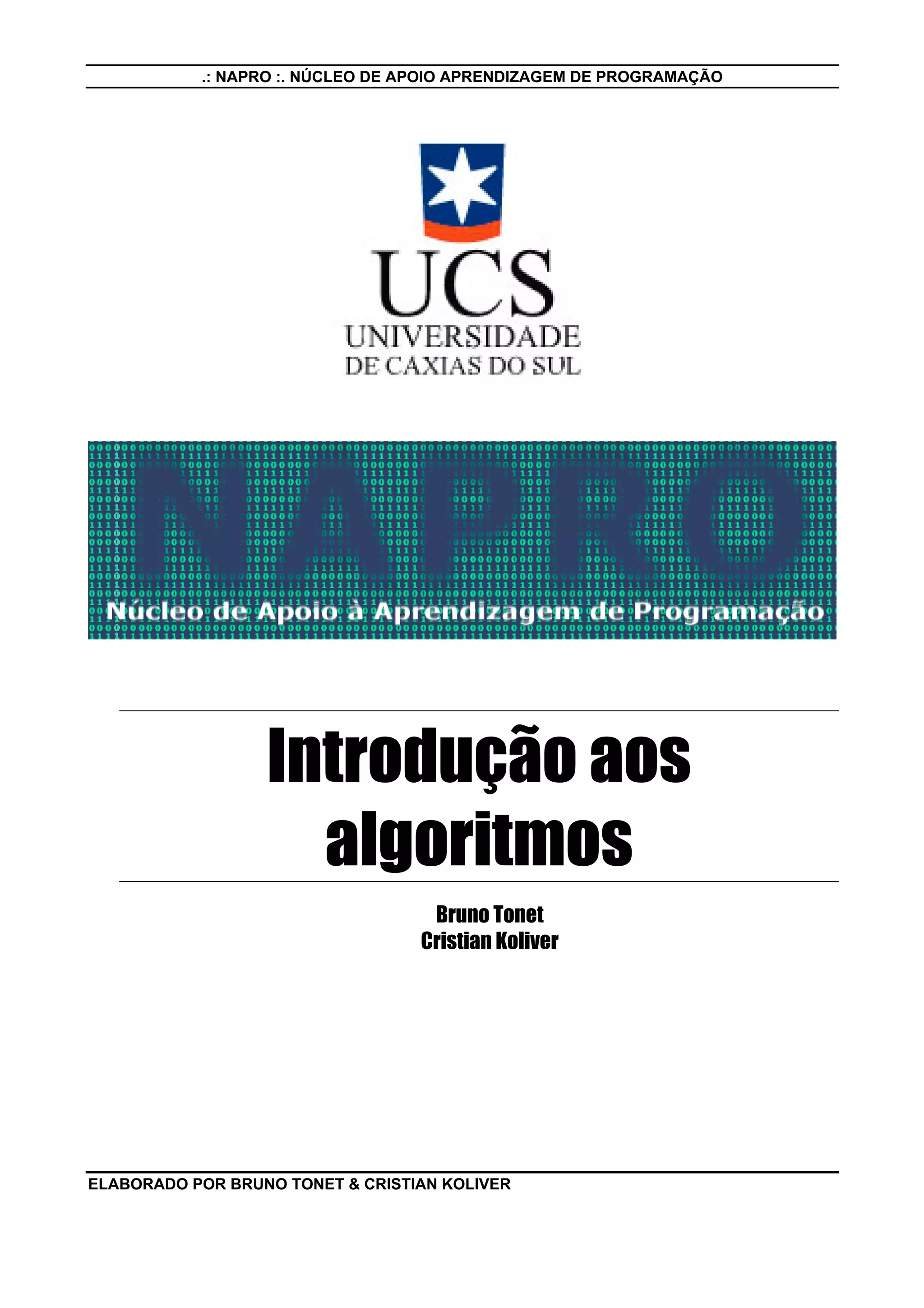 O documento apresenta uma introdução aos algoritmos, definindo-os como sequências lógicas de instruções para resolver problemas. Descreve algoritmos não computacionais e computacionais, mostrando exemplos de cada um. Também define elementos básicos da linguagem de programação Portugol como variáveis, estruturas condicionais e de repetição, e operadores matemáticos e lógicos.