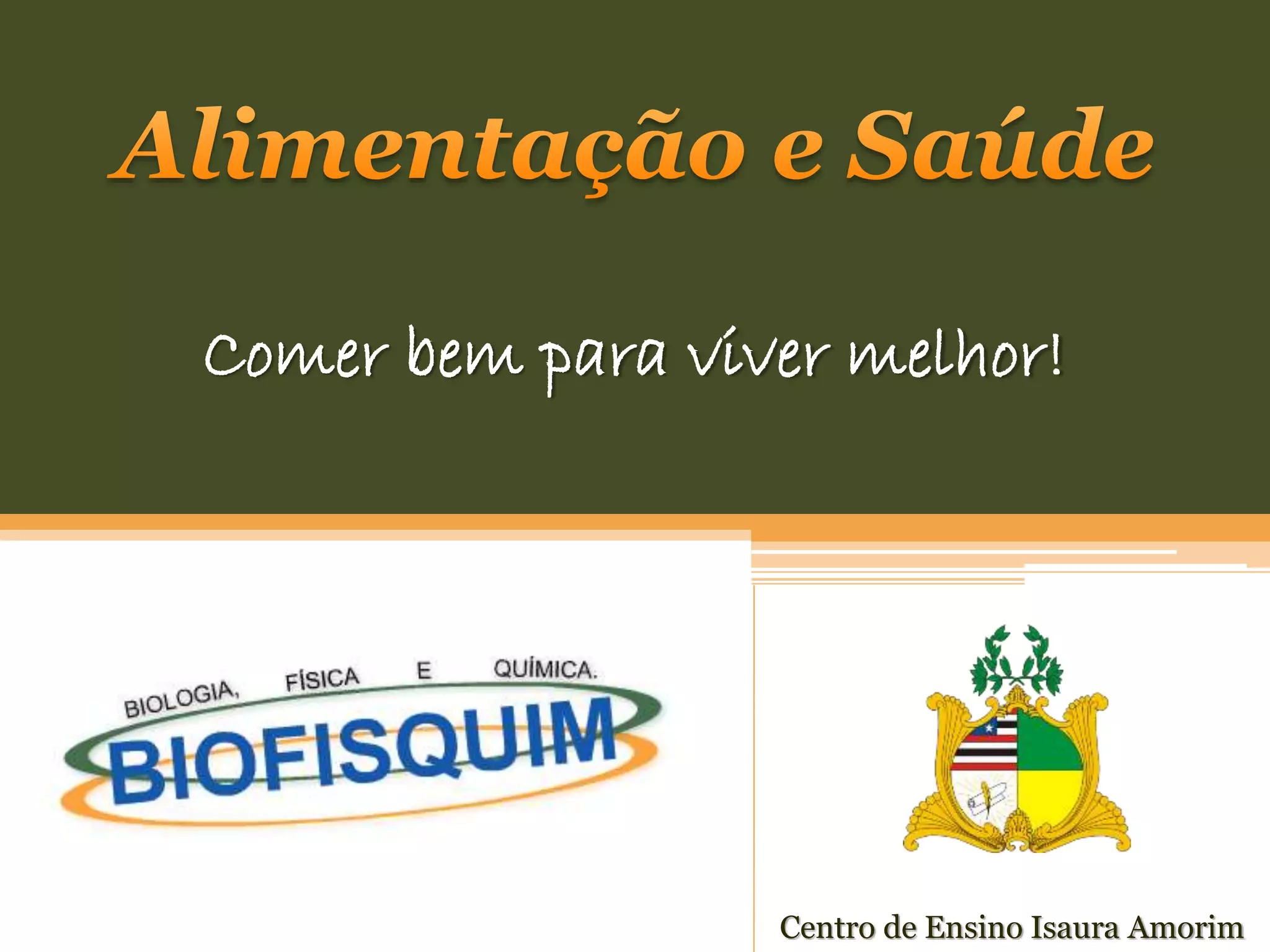 O documento discute os principais tópicos de uma alimentação saudável, incluindo uma dieta balanceada com base na pirâmide alimentar, o equilíbrio calórico, a importância da nutrição e da atividade física regular, os benefícios do exercício físico, os riscos da obesidade e como medir o IMC.