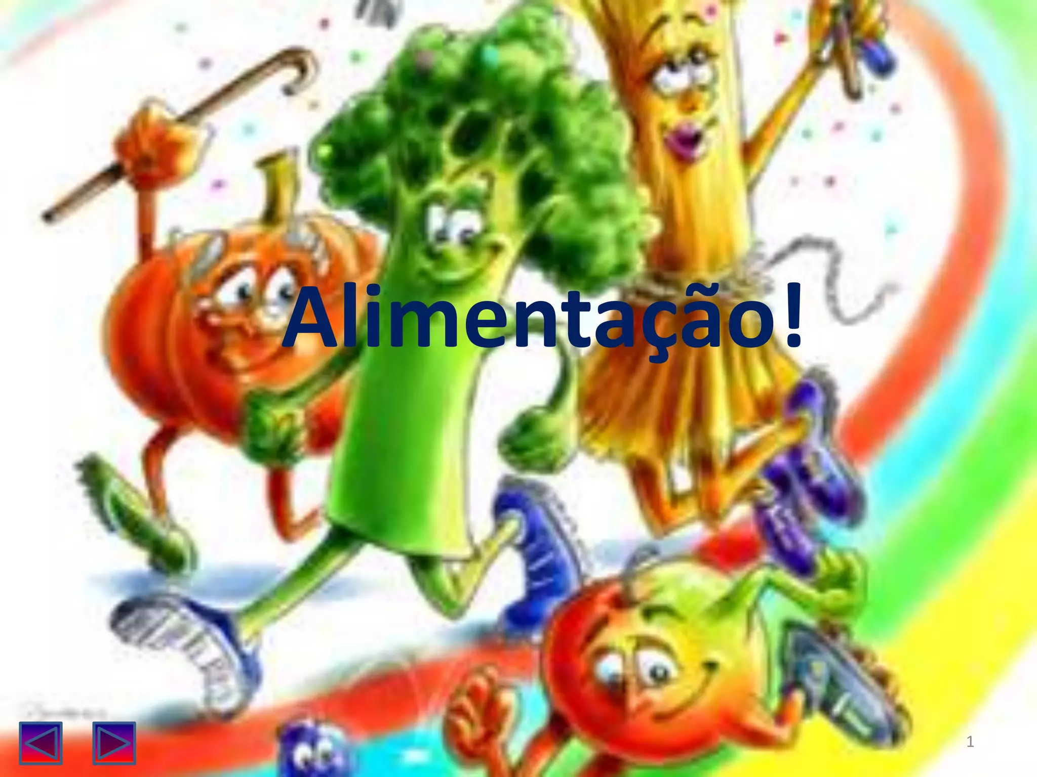O documento discute o que é alimentação, o que são alimentos e como ter uma alimentação saudável. Explica que a alimentação é o processo pelo qual os organismos obtêm nutrientes e que alimentos incluem fontes de matéria e energia, bem como substâncias culturais. Recomenda consumir diversos grupos alimentares como legumes, frutas e carnes brancas, e evitar excessos que podem levar a problemas de saúde.