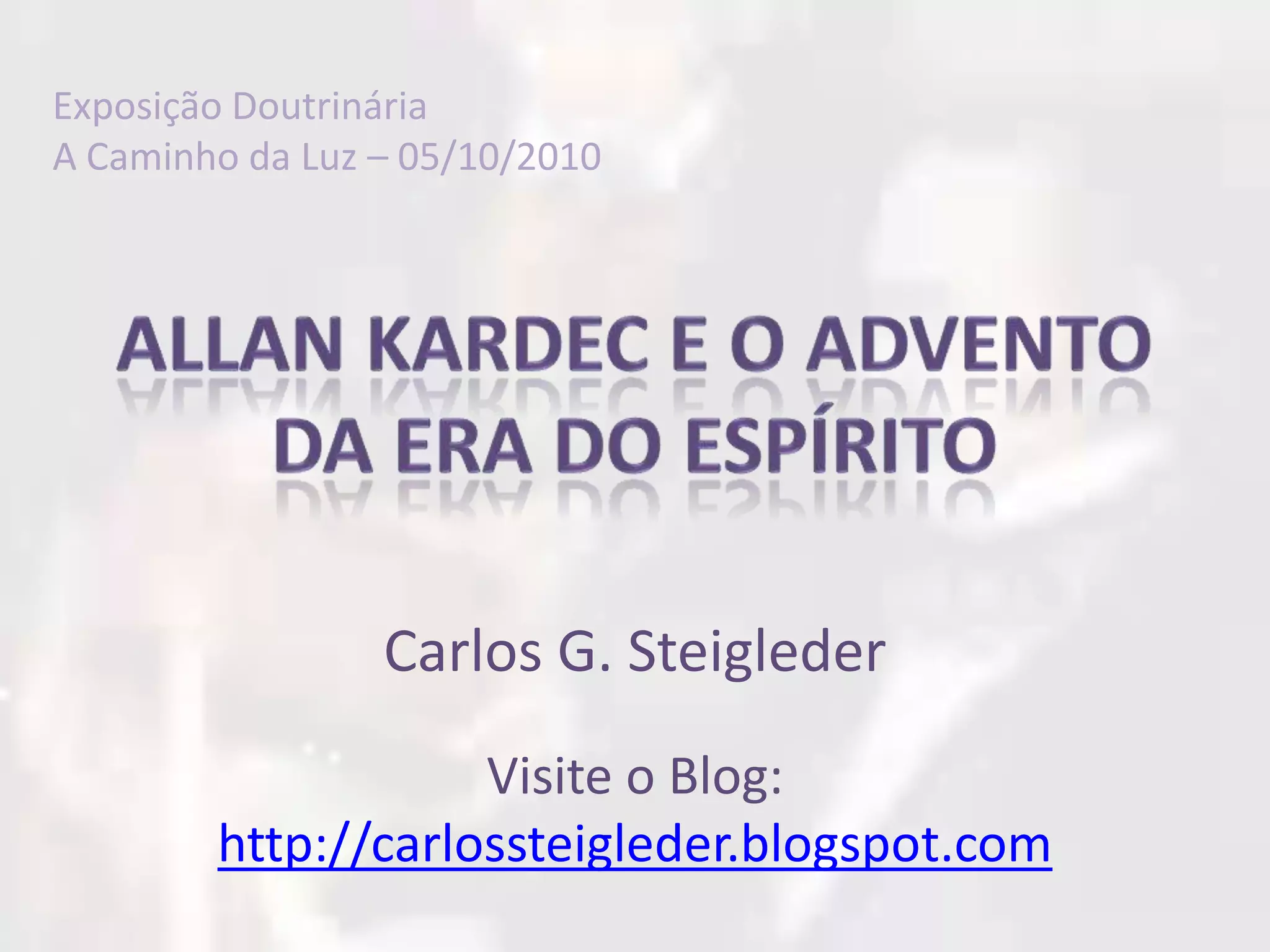 [1] No século XIX, a França passava por um período de revolução e crise espiritual após a queda do Cristianismo, enquanto a Ciência desafiava as crenças religiosas. [2] Nesse contexto, Allan Kardec inaugurou a Doutrina Espírita, que rapidamente se propagou através de fenômenos espíritas e livros. [3] A Doutrina Espírita trouxe uma mensagem de esperança e amor universal inspirada pelos ensinamentos de Jesus Cristo.