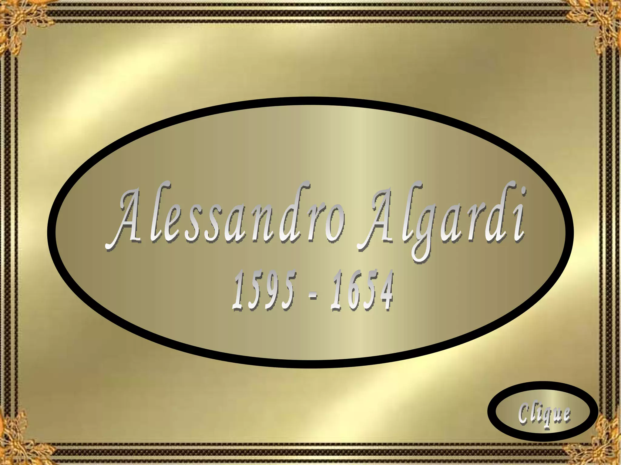 Alessandro Algardi foi um escultor e arquiteto italiano do século XVII. Ele estudou na Academia Carracci em Bolonha e trabalhou como escultor da corte em Mântua antes de se mudar para Roma em 1625. Lá, Algardi se tornou um dos principais escultores da época, criando obras como o túmulo do Papa Leão XI e a estátua de Inocêncio X.