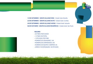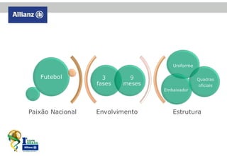 A Copa Brasil Allianz de Futebol Society foi criada pela Allianz Seguros para estreitar os laços com sua rede de mais de 10.000 corretores através de um campeonato esportivo. Na segunda edição, o campeonato contou com a participação de 192 times e 5.000 participantes e gerou um aumento de 30% nos contratos fechados.
