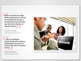 O documento aborda problemas comuns em gerenciamento de projetos de software e propõe um modelo de integração entre gestão de negócios e engenharia de software. Destaca a importância de colaboração, transparência, e ferramentas de qualidade que reduzem erros e melhoram a eficiência. Também menciona o uso de sistemas como Team Foundation Server para gerenciamento de ciclo de vida de aplicações com metodologias ágeis, relatórios em tempo real, e integração eficaz de processos.
