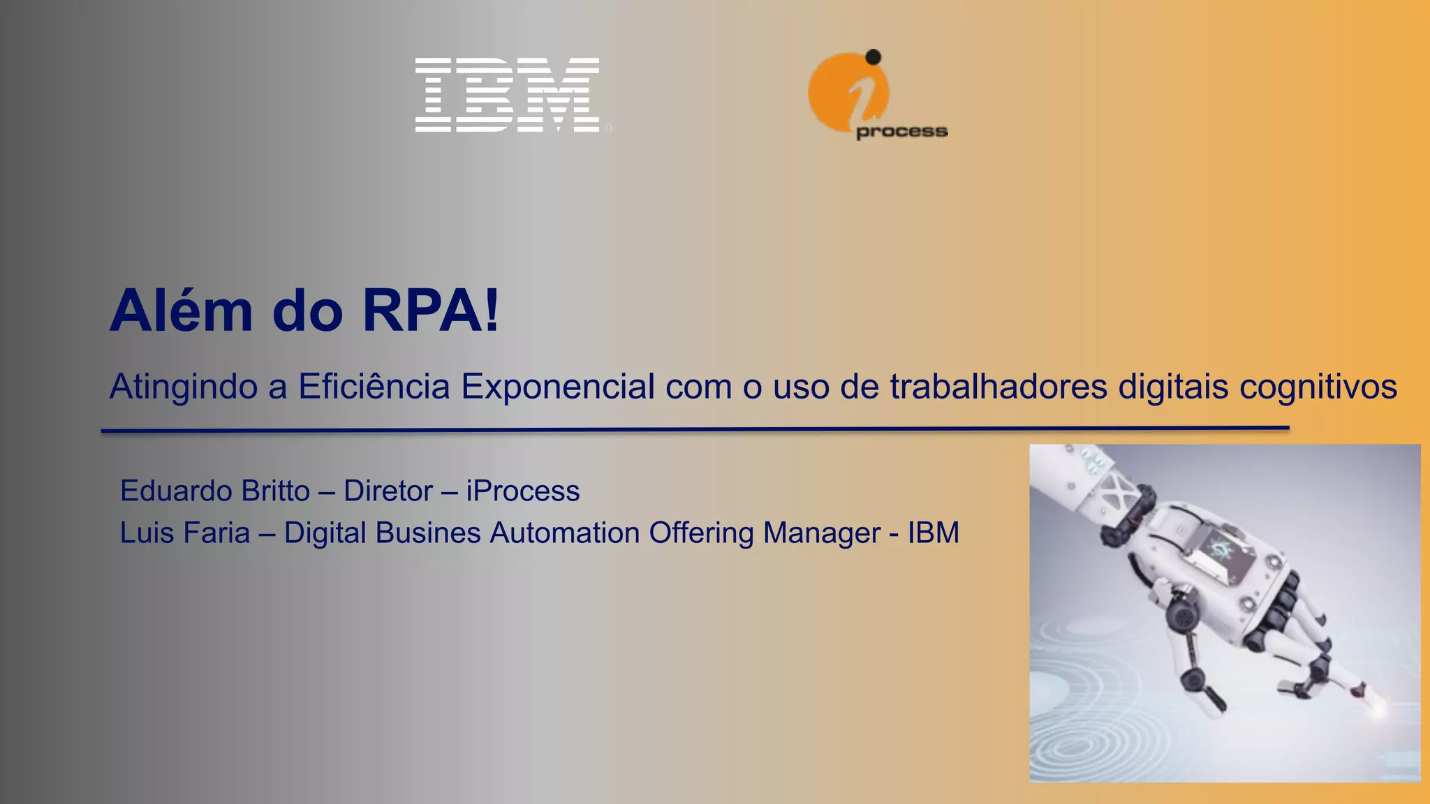 O documento discute como a automação robótica de processos (RPA) pode ser usada para aumentar a eficiência de trabalhadores, permitindo que foquem em tarefas de maior valor. RPA pode automatizar tarefas repetitivas manualmente e liberar tempo para atividades analíticas. Isso permite que empresas aumentem a produção com a mesma equipe ou mesmo reduzam custos.