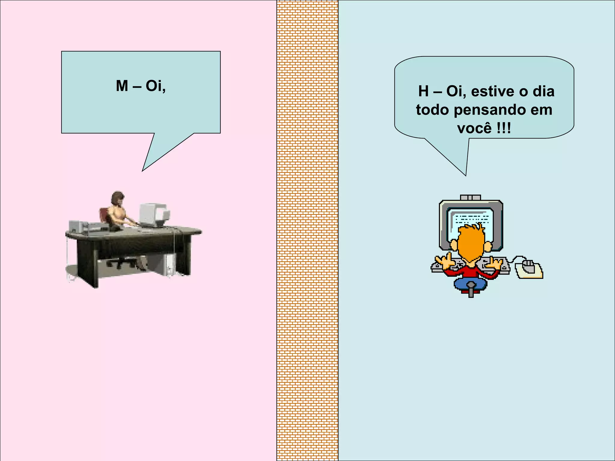 H –Oi, estive o dia todo pensando em você !!! M – Oi,