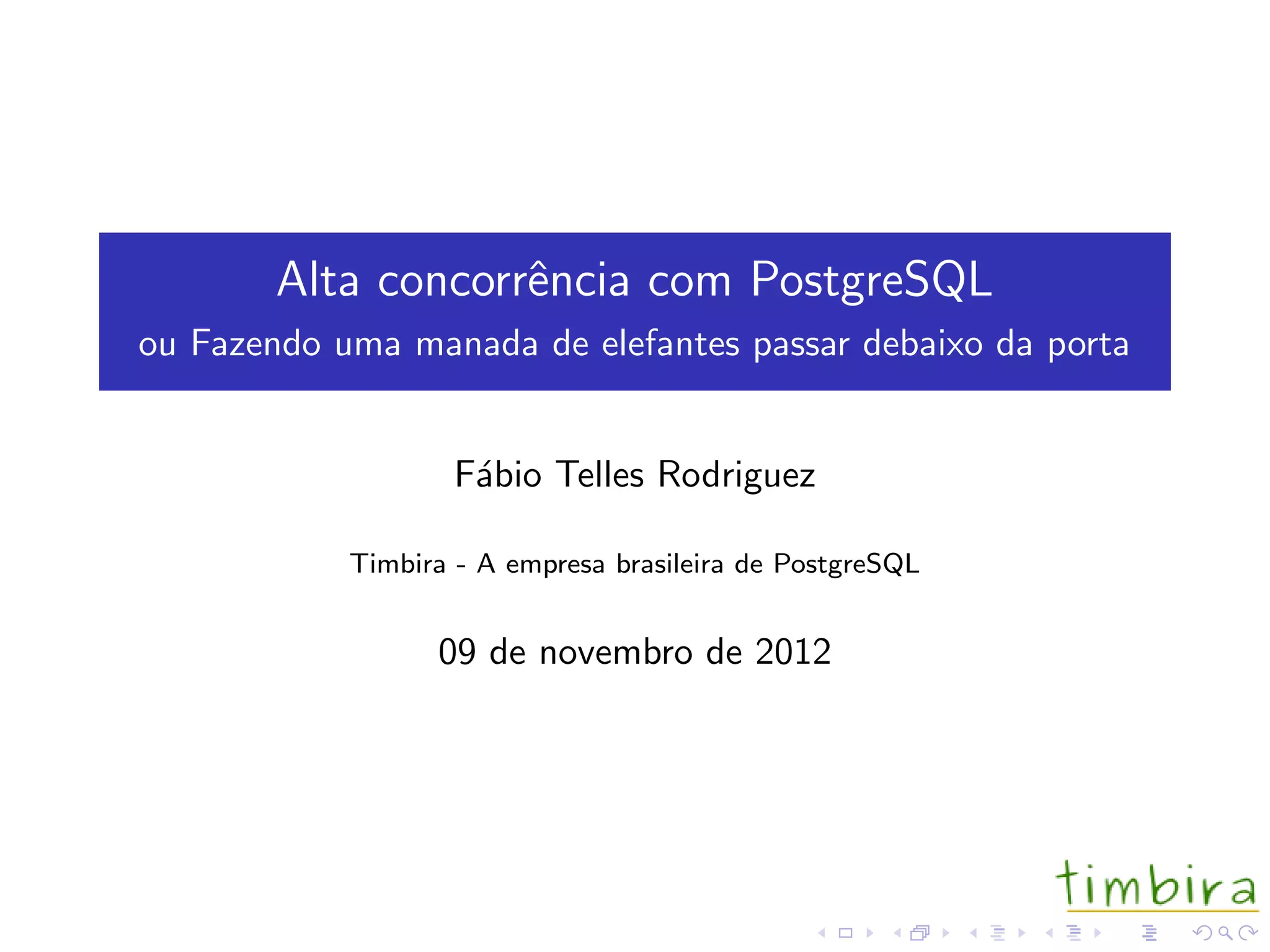 O documento discute os desafios e soluções para aplicações OLTP com alta concorrência usando PostgreSQL, incluindo problemas de modelagem de dados e gerenciamento de conexões. Apresenta sugestões para otimizar o desempenho, como o ajuste de configurações de sistema e PostgreSQL, uso de caches e pools de conexões, além de recomendações de testes e monitoramento contínuo. Também destaca a importância de uma boa modelagem de dados e práticas de desenvolvimento para evitar problemas de desempenho.