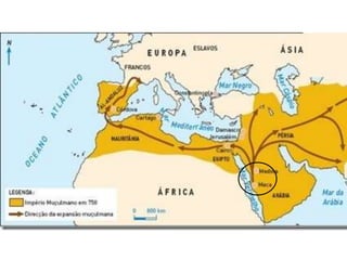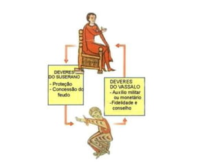 Durante a Idade Média, o Império Romano entrou em declínio devido às invasões bárbaras, levando à formação de reinos bárbaros e ao surgimento do sistema feudal. A Alta Idade Média foi marcada pela decadência econômica e ascensão da Igreja Católica, enquanto a Baixa Idade Média viu o renascimento urbano e comercial e o fortalecimento do poder real. Nesse período, o Islã também se expandiu, estabelecendo um grande império muçulman