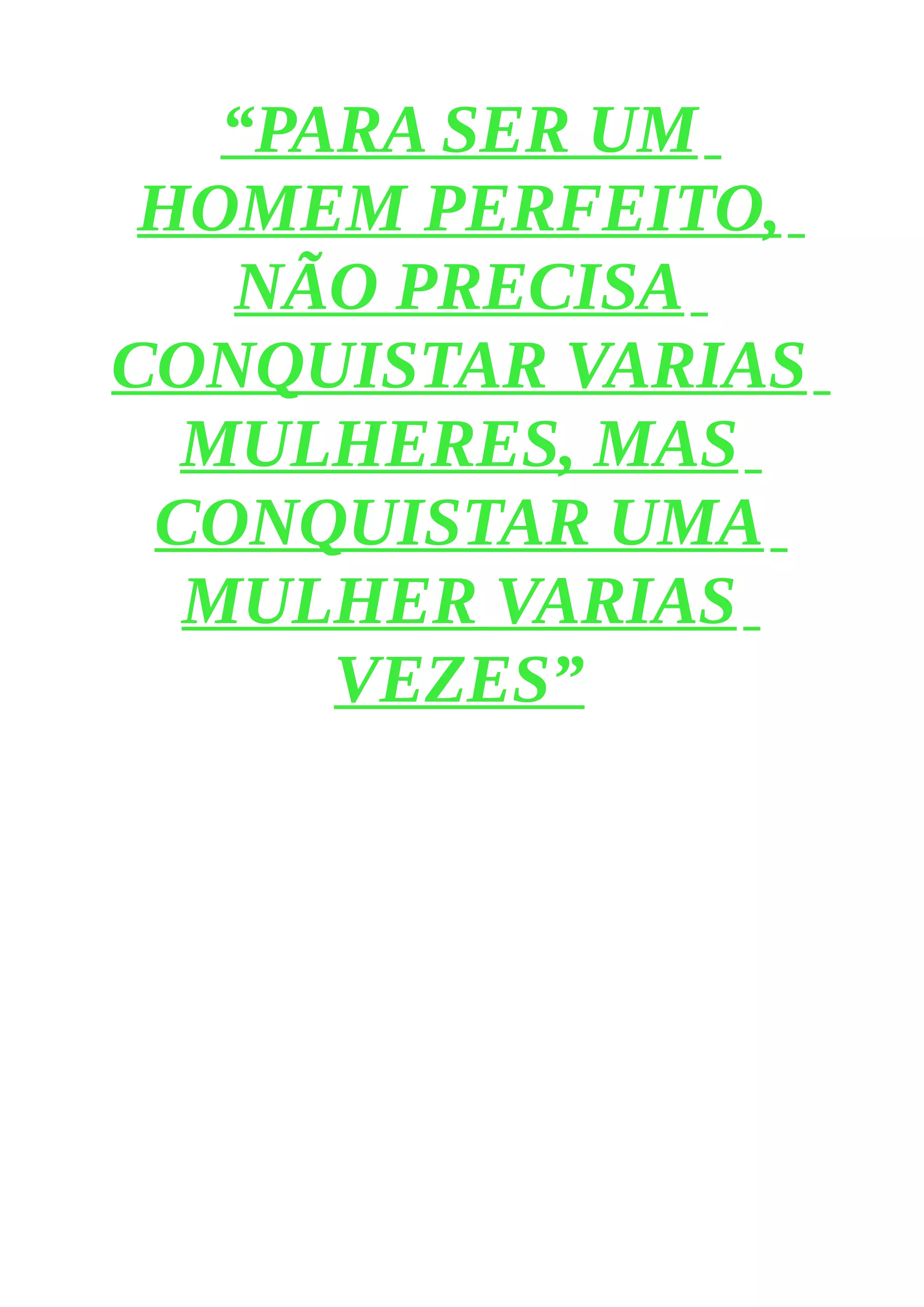 Para ser um homem perfeito, não é necessário conquistar muitas mulheres, mas sim conquistar a mesma mulher repetidamente mantendo seu relacionamento saudável e de confiança.
