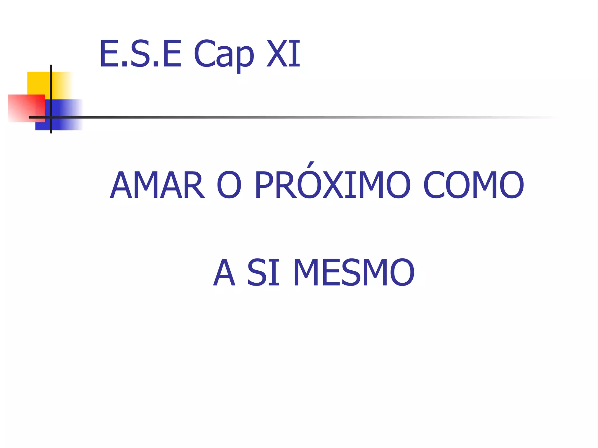 O documento discute a importância do amor ao próximo através da análise de passagens bíblicas e ensinamentos espirituais. Jesus ensina que o segundo maior mandamento é amar o próximo como a si mesmo. Uma parábola mostra que aqueles que não perdoam os outros não serão perdoados. O amor resume a doutrina de Jesus e leva ao melhoramento moral da humanidade e felicidade quando praticado.