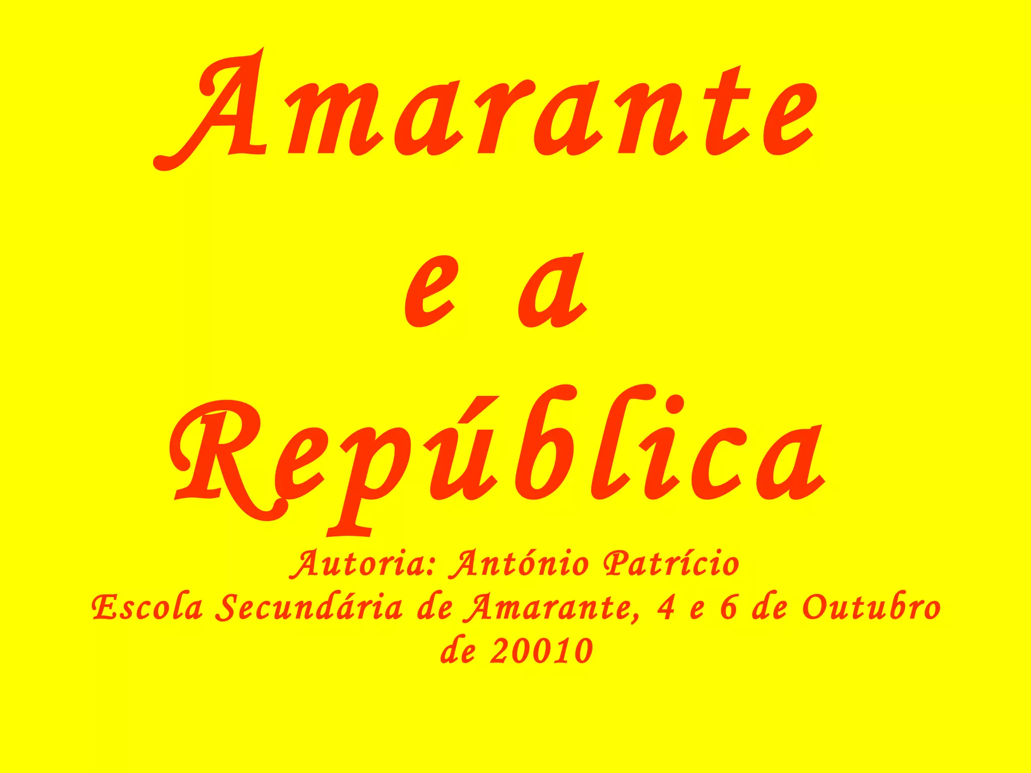 O documento descreve a implantação da República em Portugal e em Amarante em particular. Resume os principais valores republicanos e figuras importantes como Almirante Cândido dos Reis, Dr. Miguel Bombarda e Tenente Machado dos Santos. Também detalha as mudanças de nomes de ruas em Amarante após a proclamação da República em 1910, incluindo a homenagem a figuras como Lago Cerqueira.