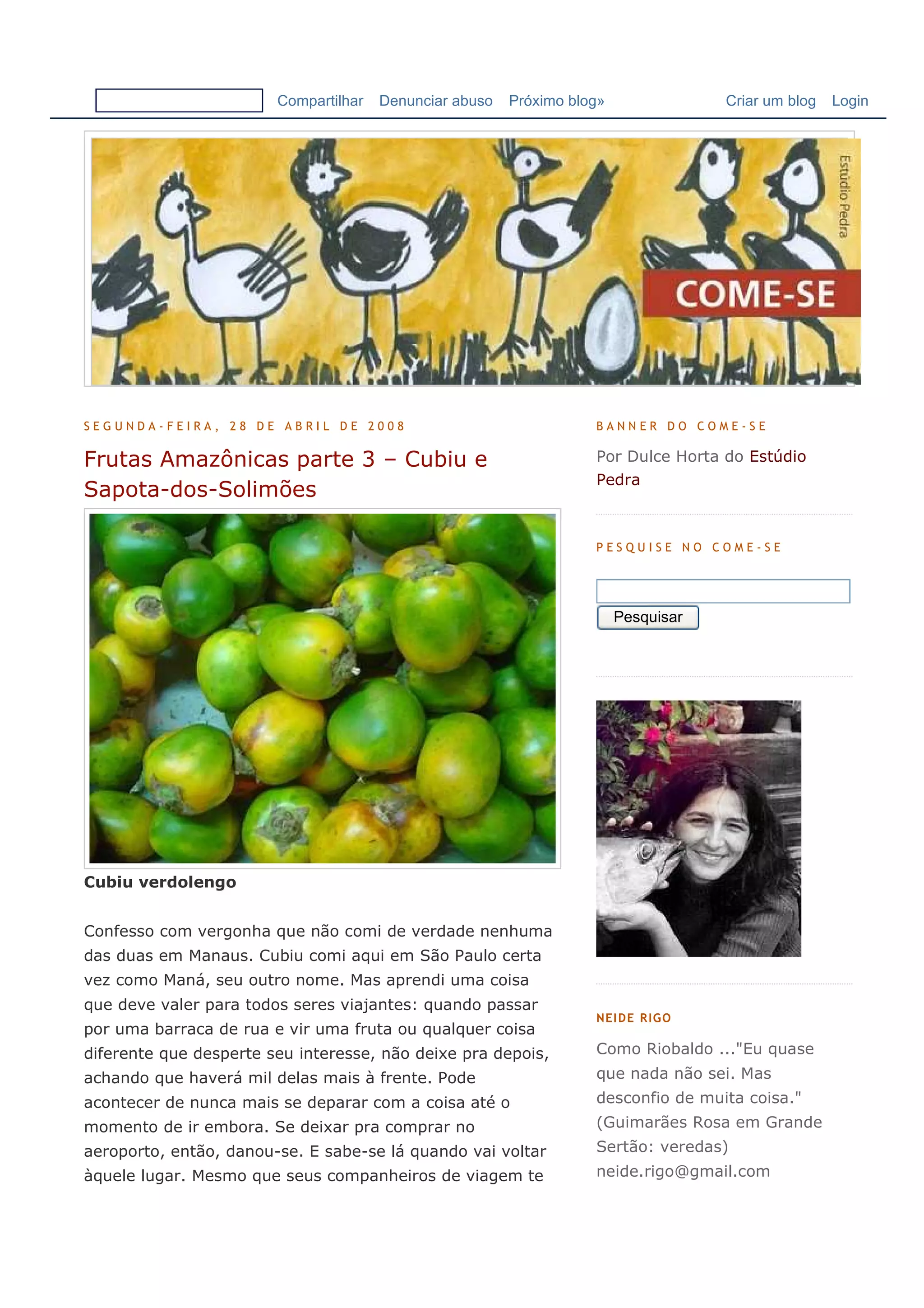 Este documento fornece informações sobre duas frutas amazônicas: Cubiu e Sapota-dos-Solimões. O autor descreve o Cubiu como uma fruta solanácea parente de tomate, tomarillo e berinjela, originária da Amazônia e usada como tempero ou em sucos. Ele também explica que o Cubiu é rico em niacina e pode ter efeitos benéficos para a saúde, como reduzir colesterol e glicemia. A Sapota-dos-Solimões é descrita como uma fruta grande de cas