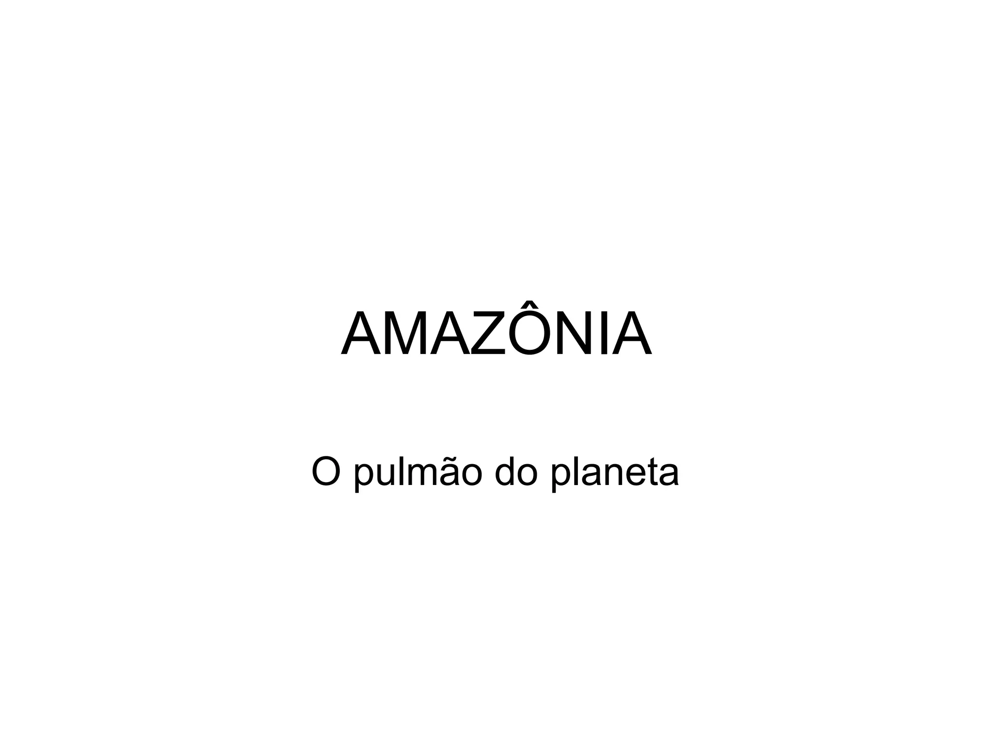 Este documento descreve a Amazônia, o maior bioma do planeta, abordando sua importância ecológica, ameaças de desmatamento, economia baseada no extrativismo e agricultura, e clima quente e úmido característico da região.